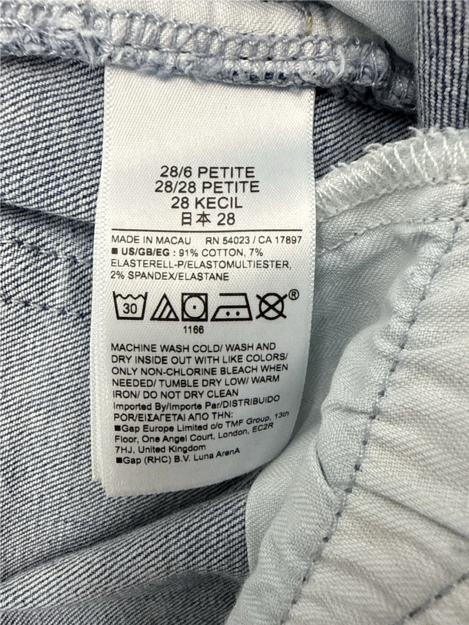These pre-owned GAP Baby Boot jeans are a classic addition to any wardrobe. Crafted from a comfortable cotton blend, these jeans feature a mid-rise waist and a flattering bootcut silhouette. The light-wash denim is versatile for various outfits. Perfect for fall, these jeans are available in size 28/6 Petite. Get ready to step out in style with these gently used GAP jeans, ready to become your new favorite pair.