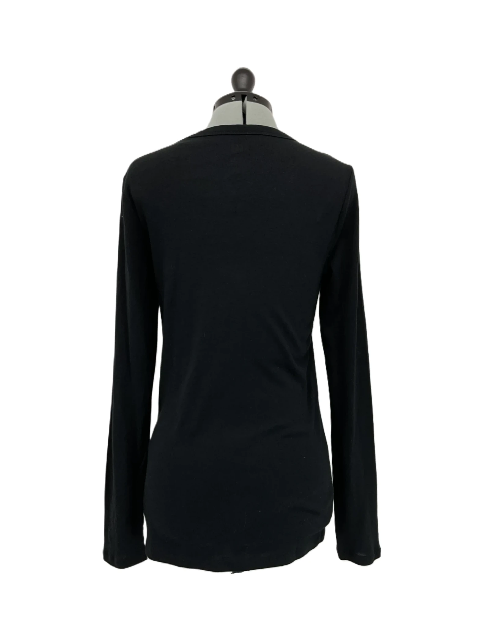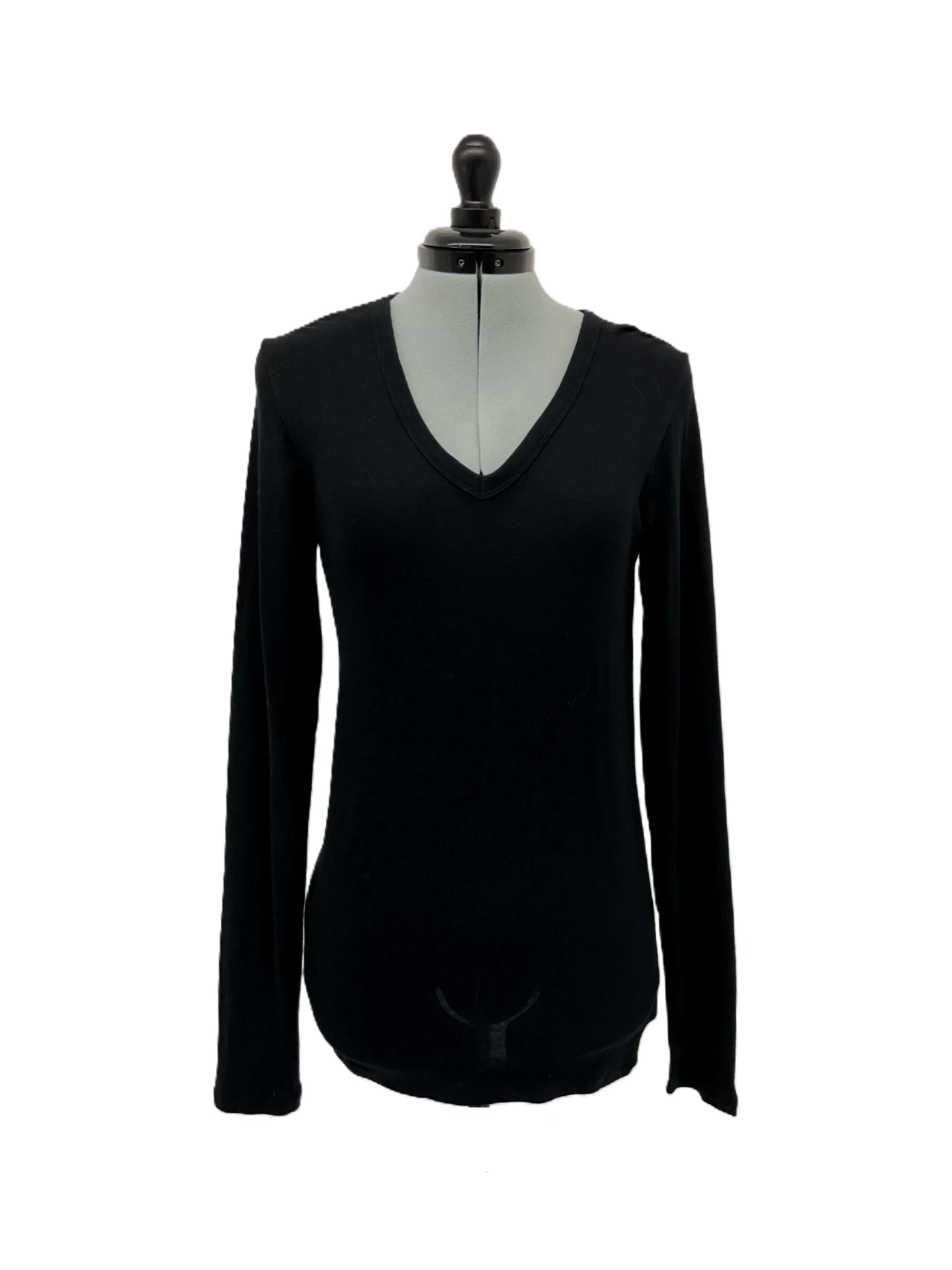 Black long-sleeve v-neck sweater for women in tall size Medium.