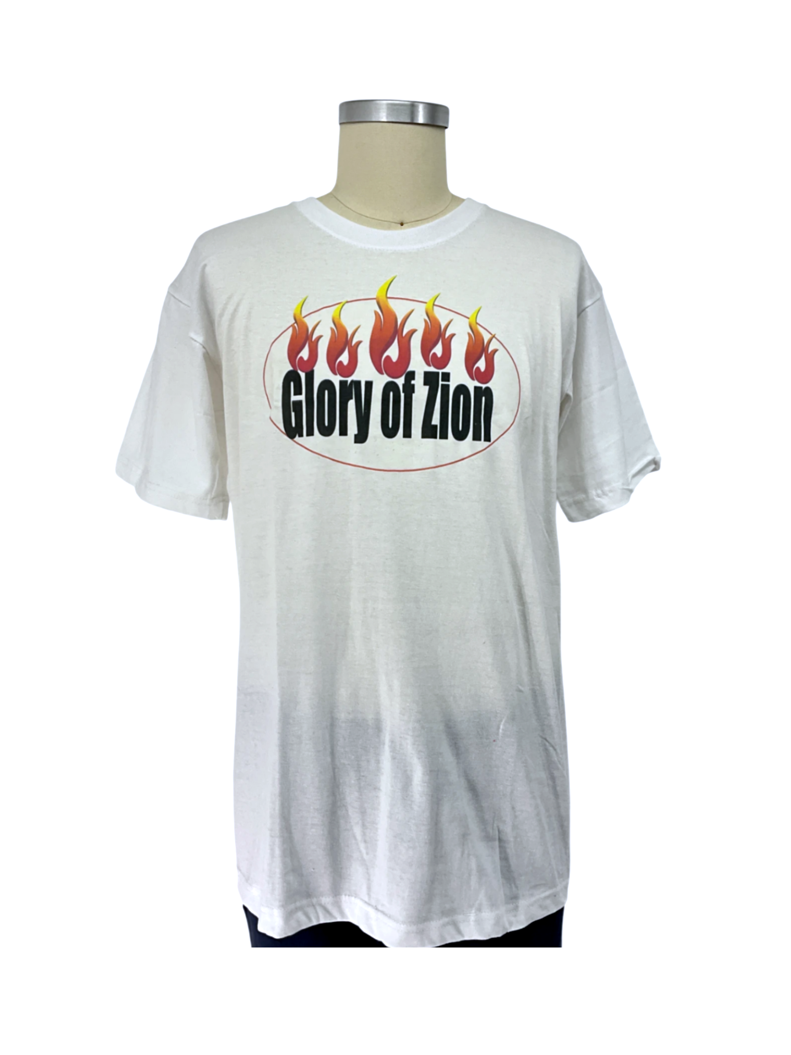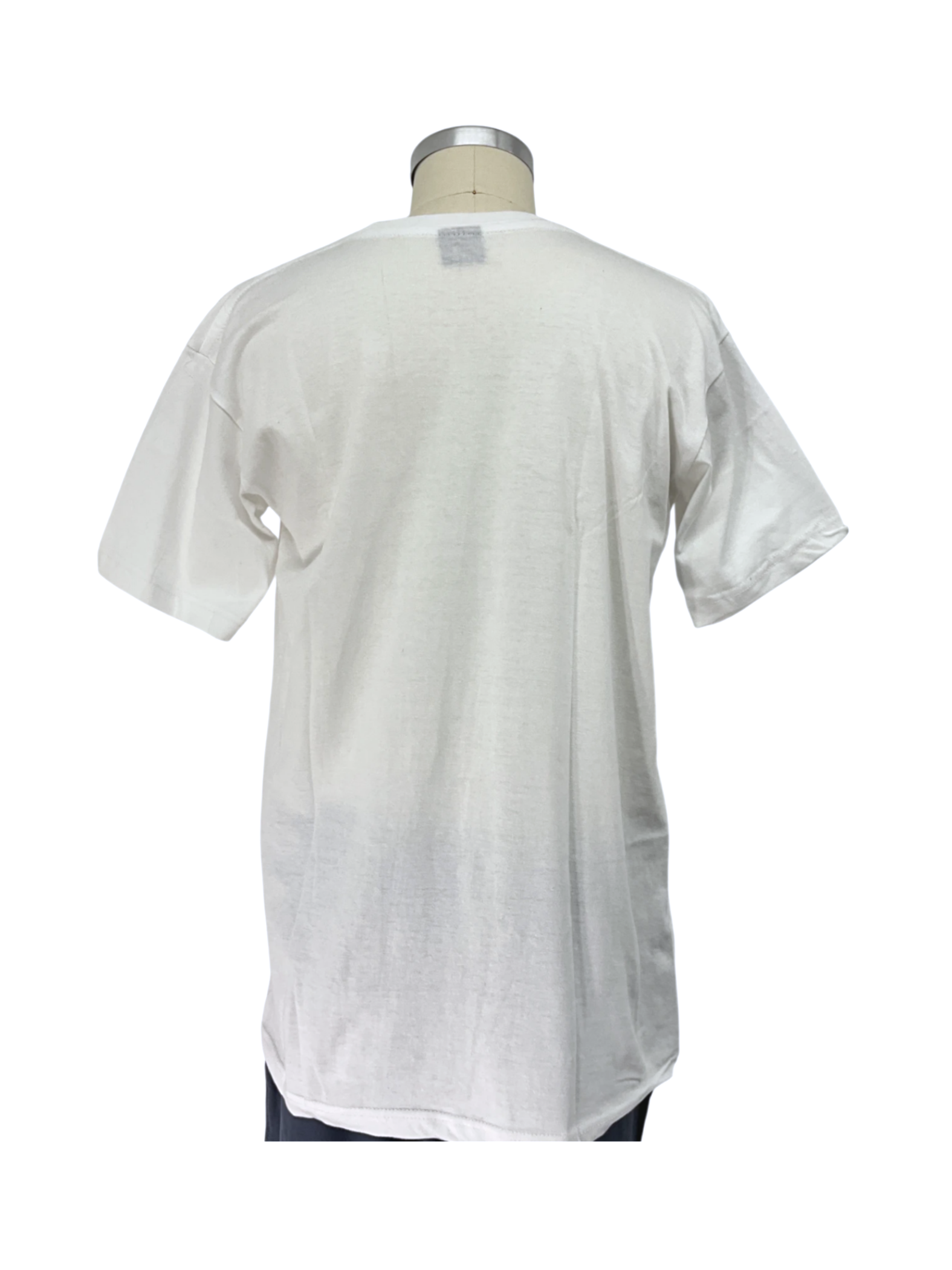 A men's graphic t-shirt in size large, with white, red, and black colors.