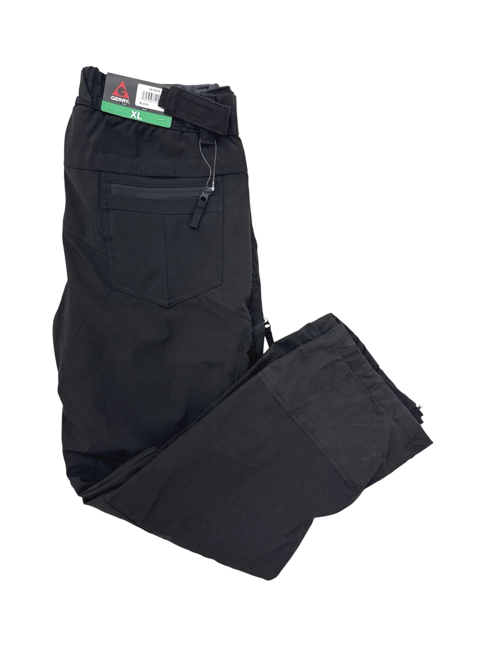 These Gerry men's cargo pants in black are a versatile and practical addition to any wardrobe. Made with durable polyester, spandex and nylon materials, they offer both comfort and functionality. Featuring multiple pockets and a regular fit, these pants are perfect for outdoor activities or casual wear. The classic black color makes them easy to pair with any top. They come in size XL.