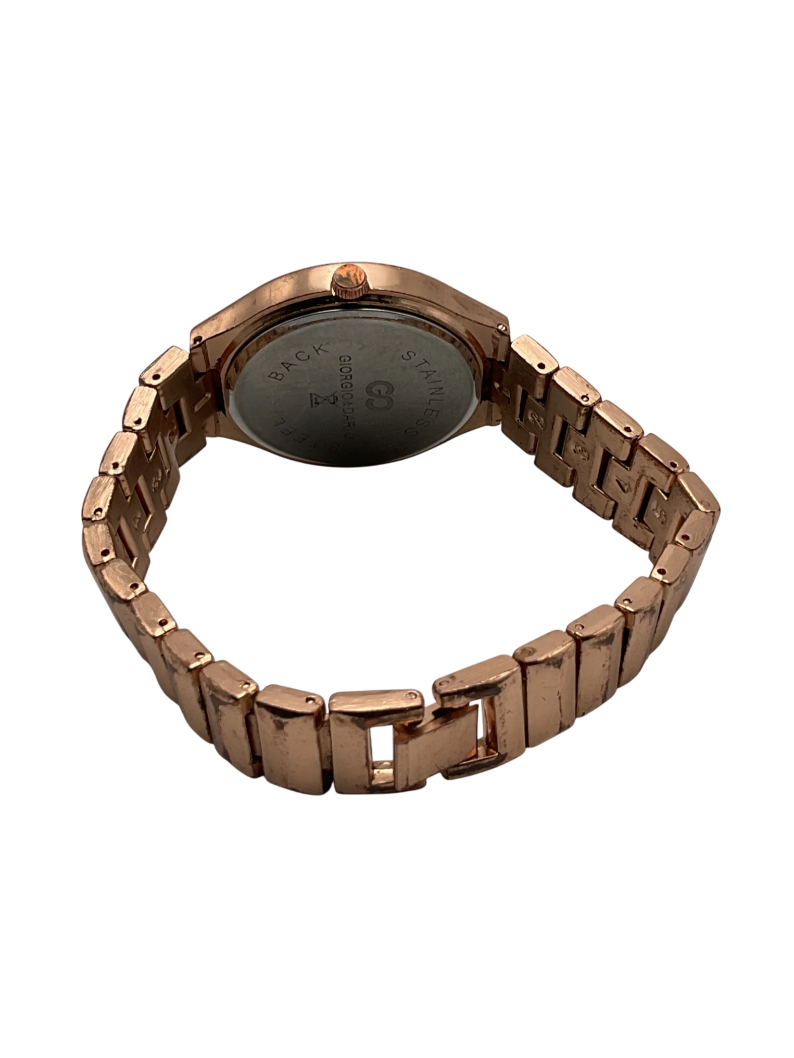 A women's rose gold watch made of stainless steel.