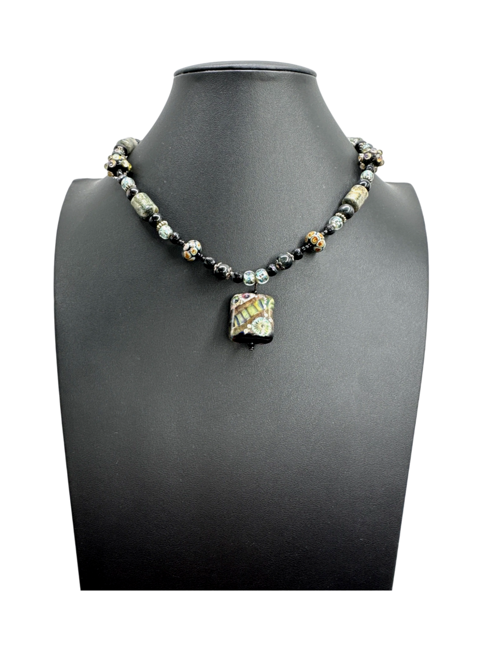 beaded design 16.5in necklace featuring a prominent rectangular pendant.