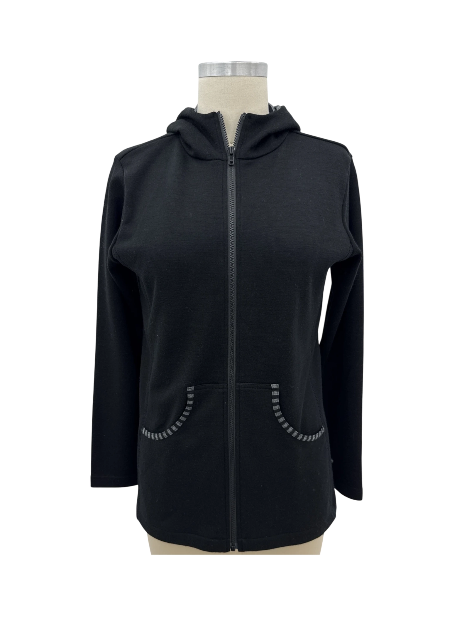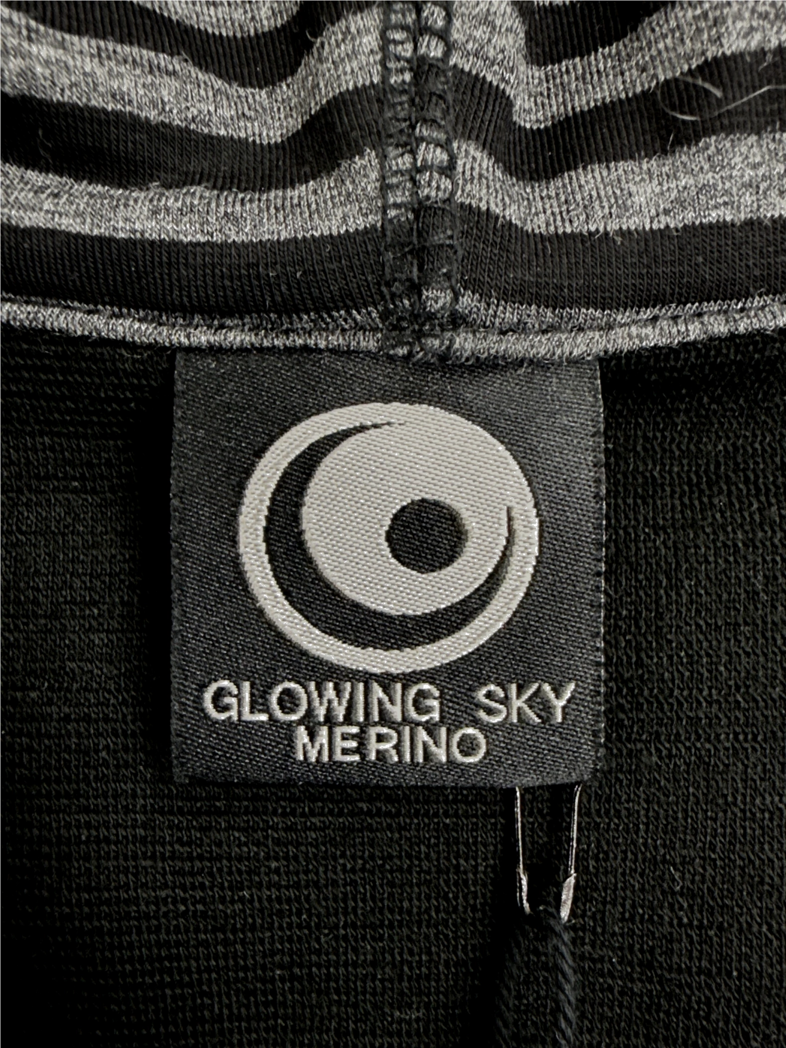 This pre-owned Glowing Sky Merino hoodie is the perfect blend of comfort and style. Crafted from a soft wool blend, this hoodie is ideal for cooler weather. The full-zip design allows for easy wear, while the cozy hood provides extra warmth. The classic black color makes it easy to pair with any outfit. Made in New Zealand from high-quality merino wool, this hoodie is a sustainable and stylish choice for your wardrobe.