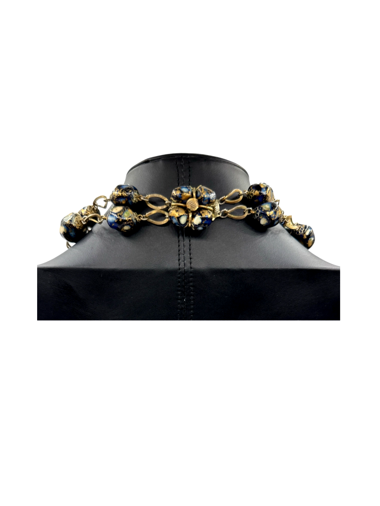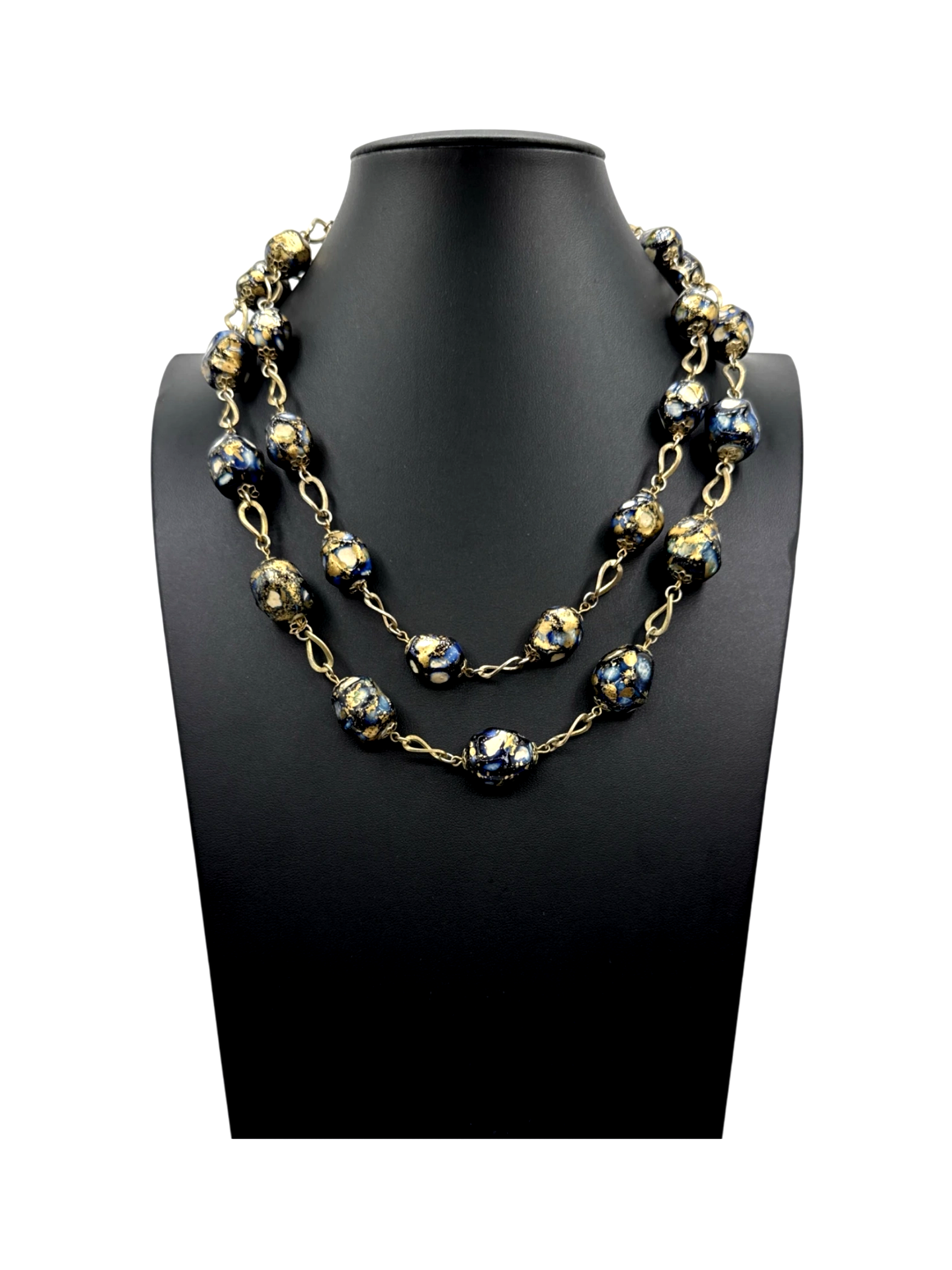 This beautiful pre-owned necklace showcases a stunning combination of gold and blue beads, perfect for adding a touch of elegance to any outfit. The necklace features a delicate chain and is designed for women who appreciate unique and stylish accessories. Ideal for special occasions or everyday wear, this necklace adds a touch of glamour. This necklace is a perfect addition to any jewelry collection.