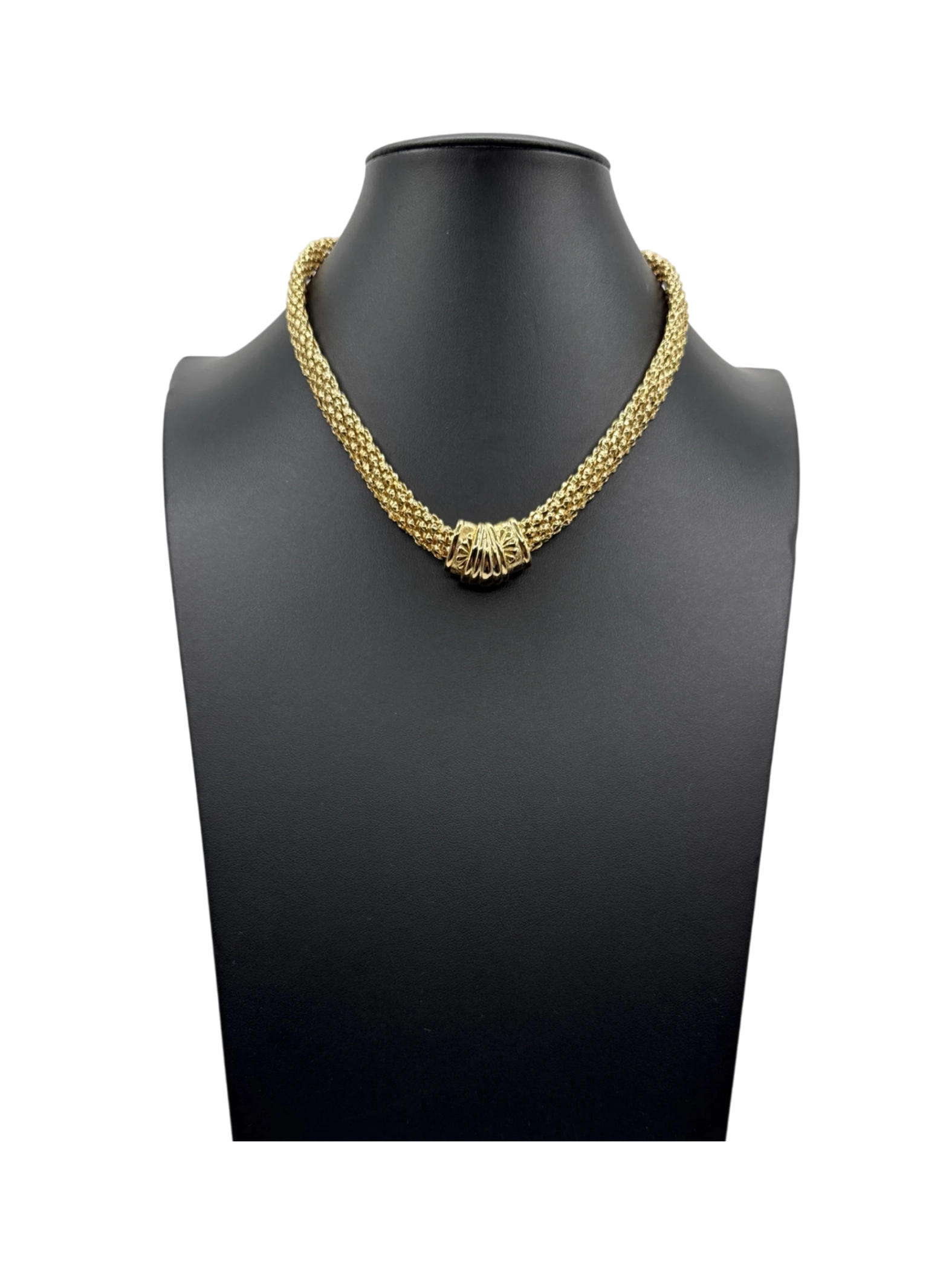 This pre-owned necklace is a stunning piece of jewelry for women. The necklace features a beautiful gold tone and a unique design that will complement any outfit. Perfect for adding a touch of elegance to your look, this necklace is a versatile accessory for both casual and formal occasions. A great way to add a touch of gold and style to your ensemble, whether it's for a special event or everyday wear.