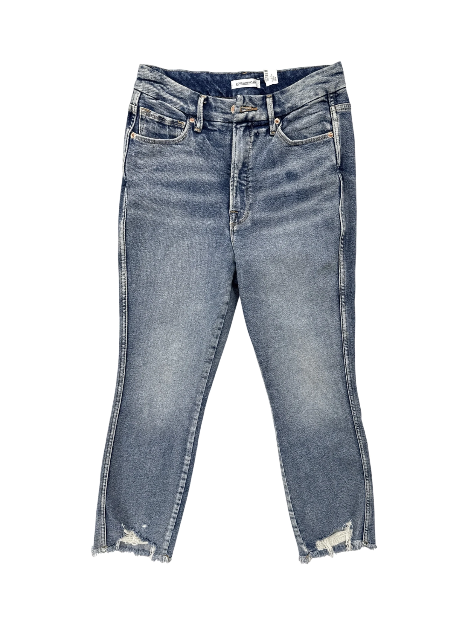 Elevate your denim collection with these Good American jeans. Made from a blend of cotton and elastane, these jeans offer both style and comfort. The classic denim wash and skinny fit create a versatile look suitable for various occasions. Perfect for a casual day out or a night on the town, these pre-owned jeans are a must-have addition to any wardrobe.