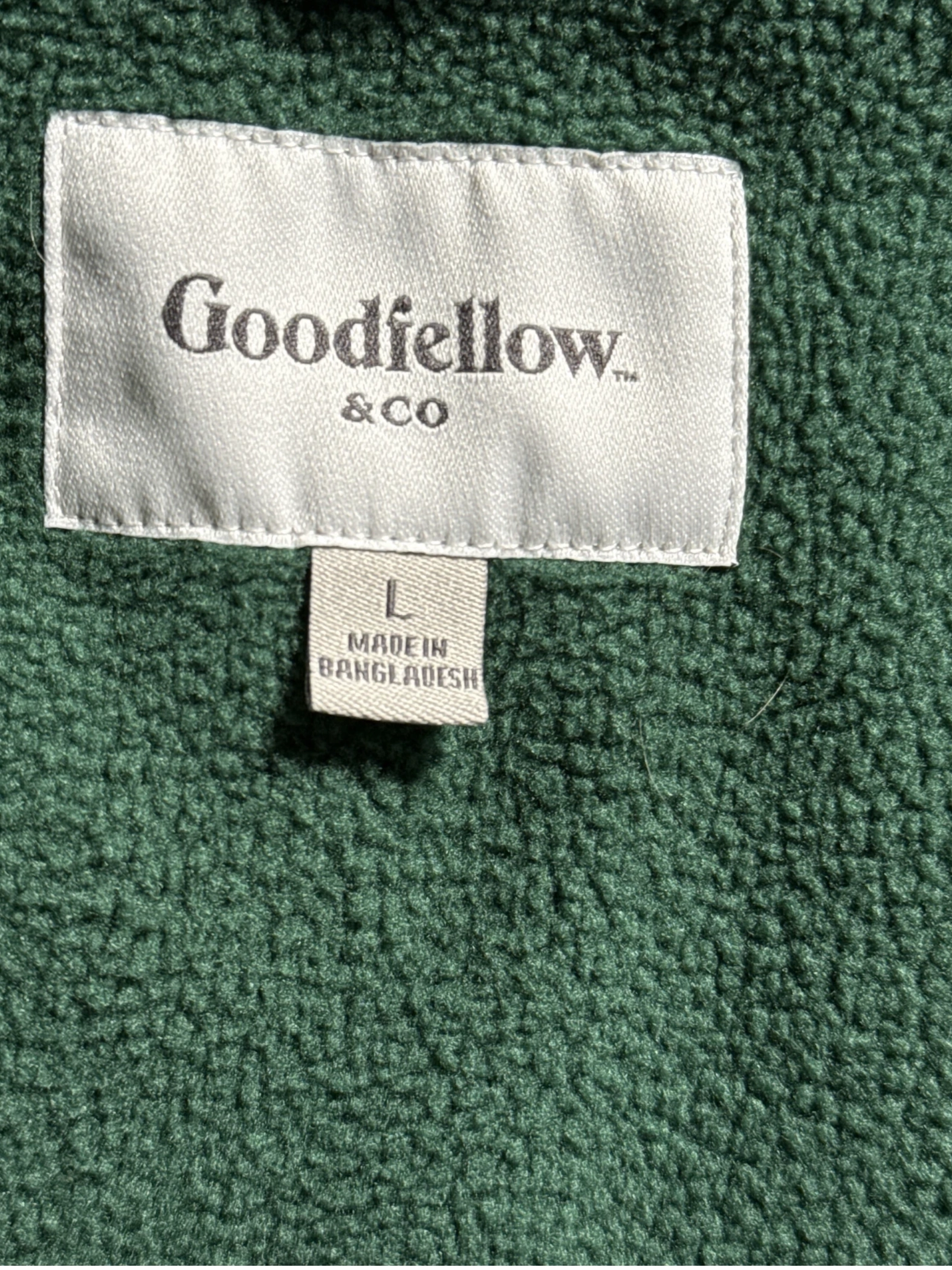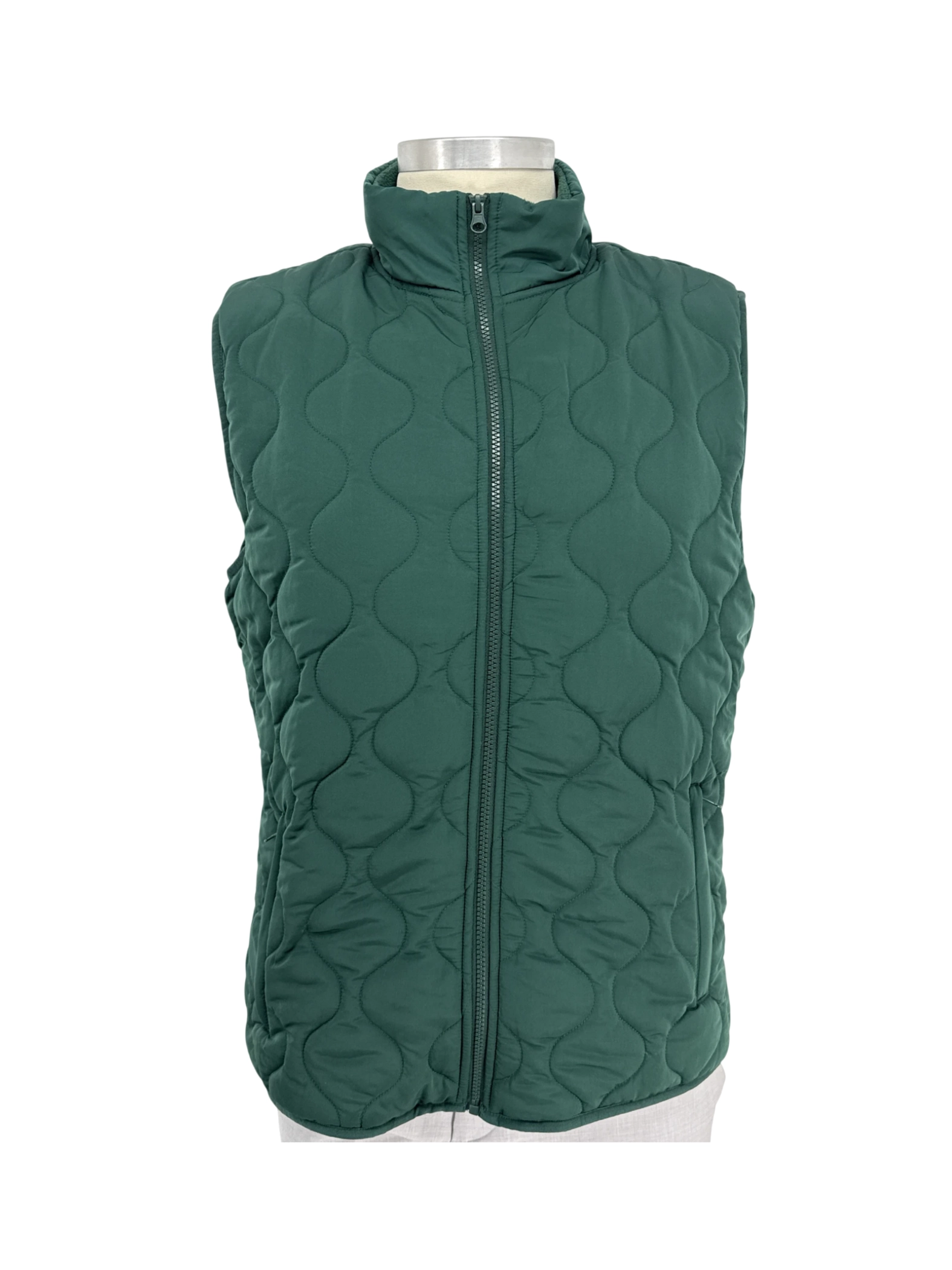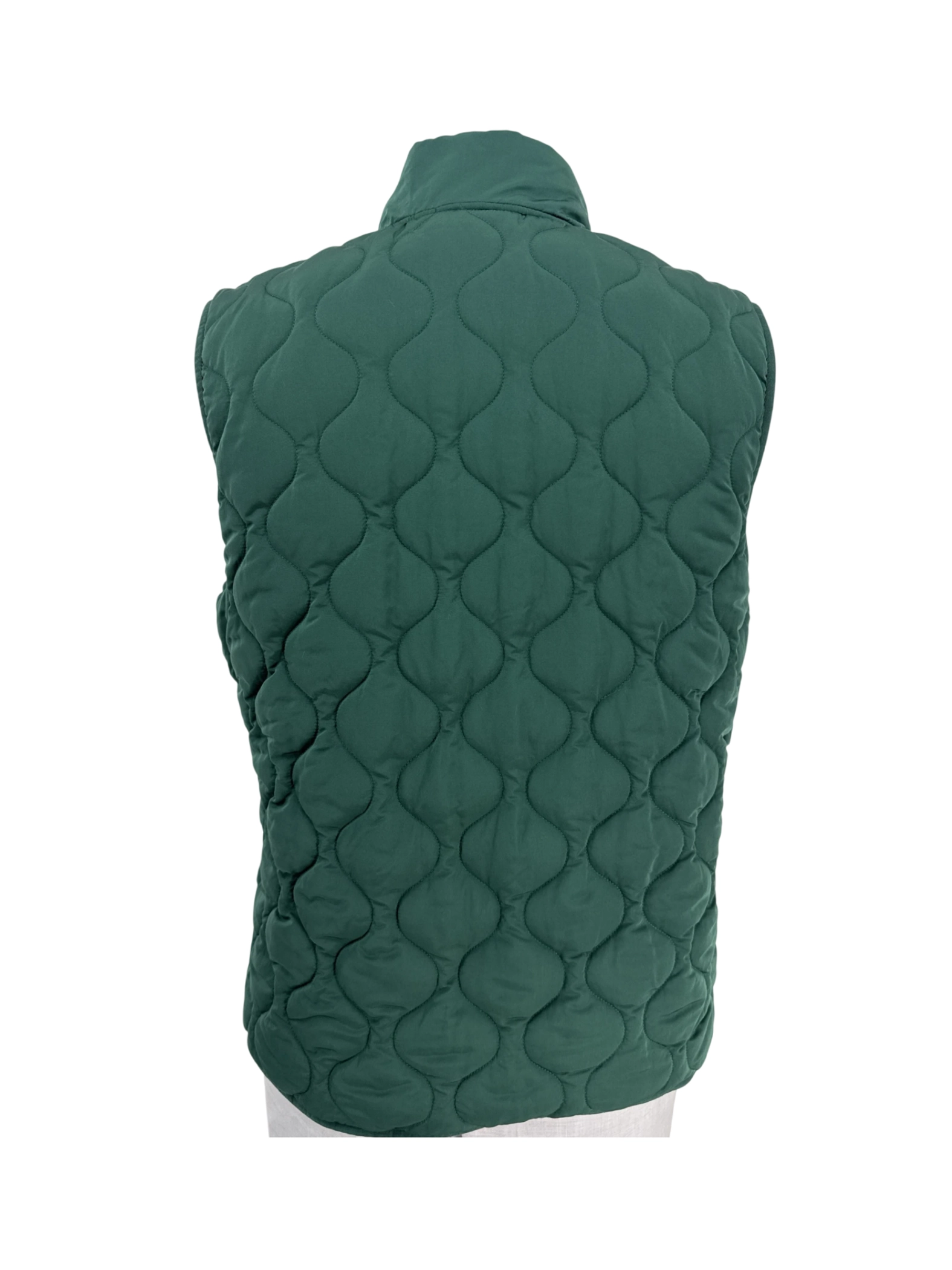 This pre-owned Goodfellow & Co vest is a stylish and practical addition to any wardrobe. The quilted design provides warmth and a modern aesthetic. Made from recycled polyester and nylon, this vest offers comfort and durability. This vest is perfect for layering during fall and winter or as a standalone piece in spring. The versatile green color makes it easy to pair with various outfits.