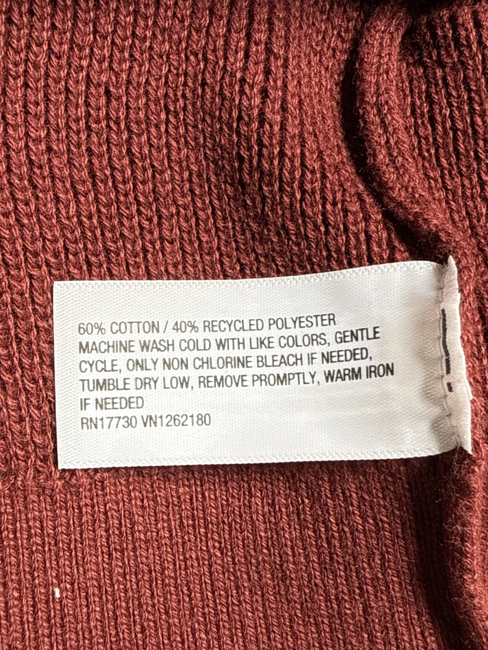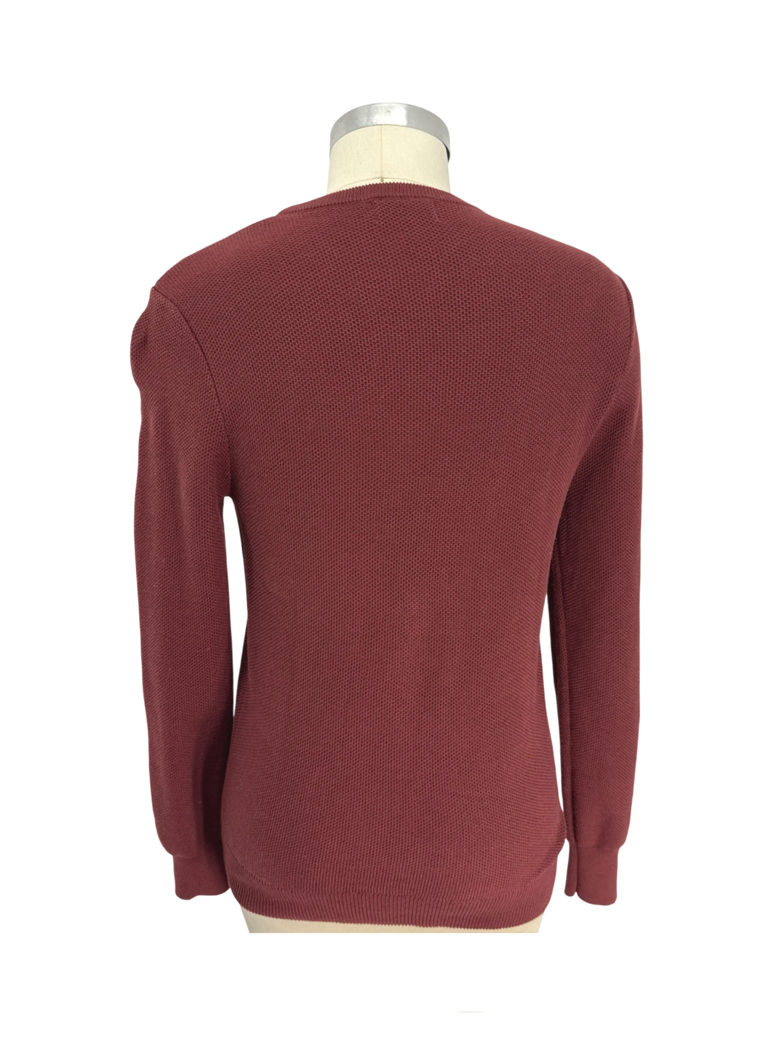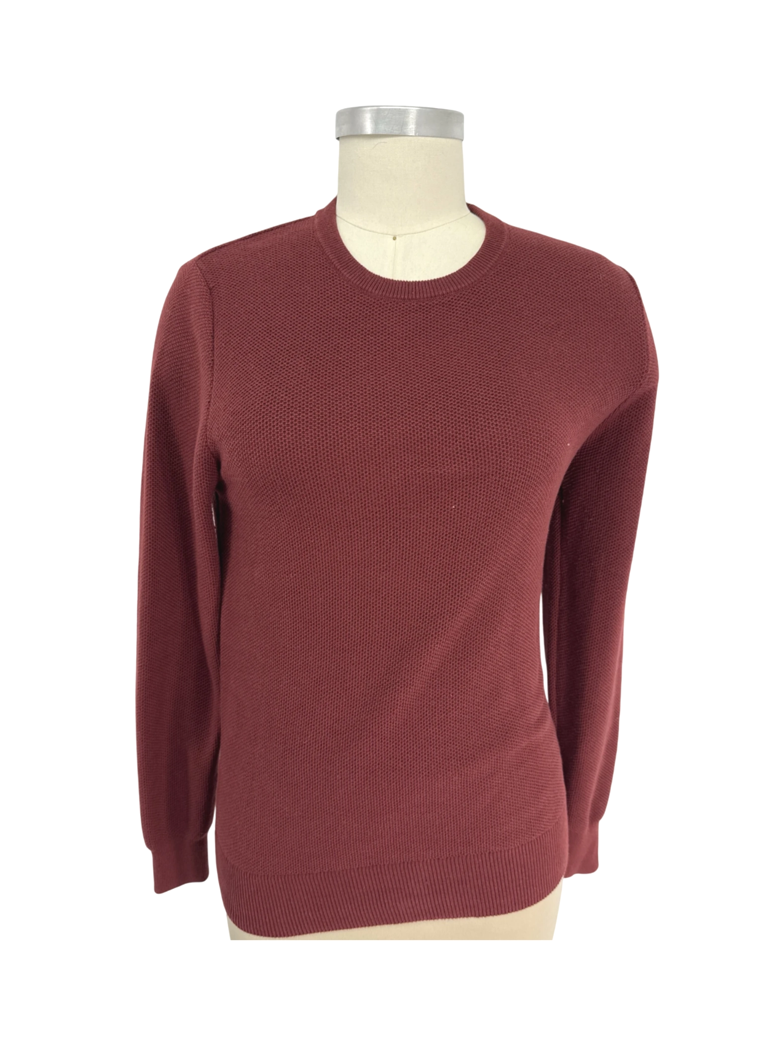 Elevate your wardrobe with this Goodfellow & Co burgundy sweater. This pre-owned sweater offers a comfortable and stylish fit, perfect for layering during the fall and winter. Featuring a classic round neckline and crafted from a blend of cotton and recycled polyester, it combines style and sustainability. The versatile pullover design makes it easy to pair with any outfit, while the rich burgundy hue adds a touch of sophistication. Perfect for casual outings or a cozy day at home.