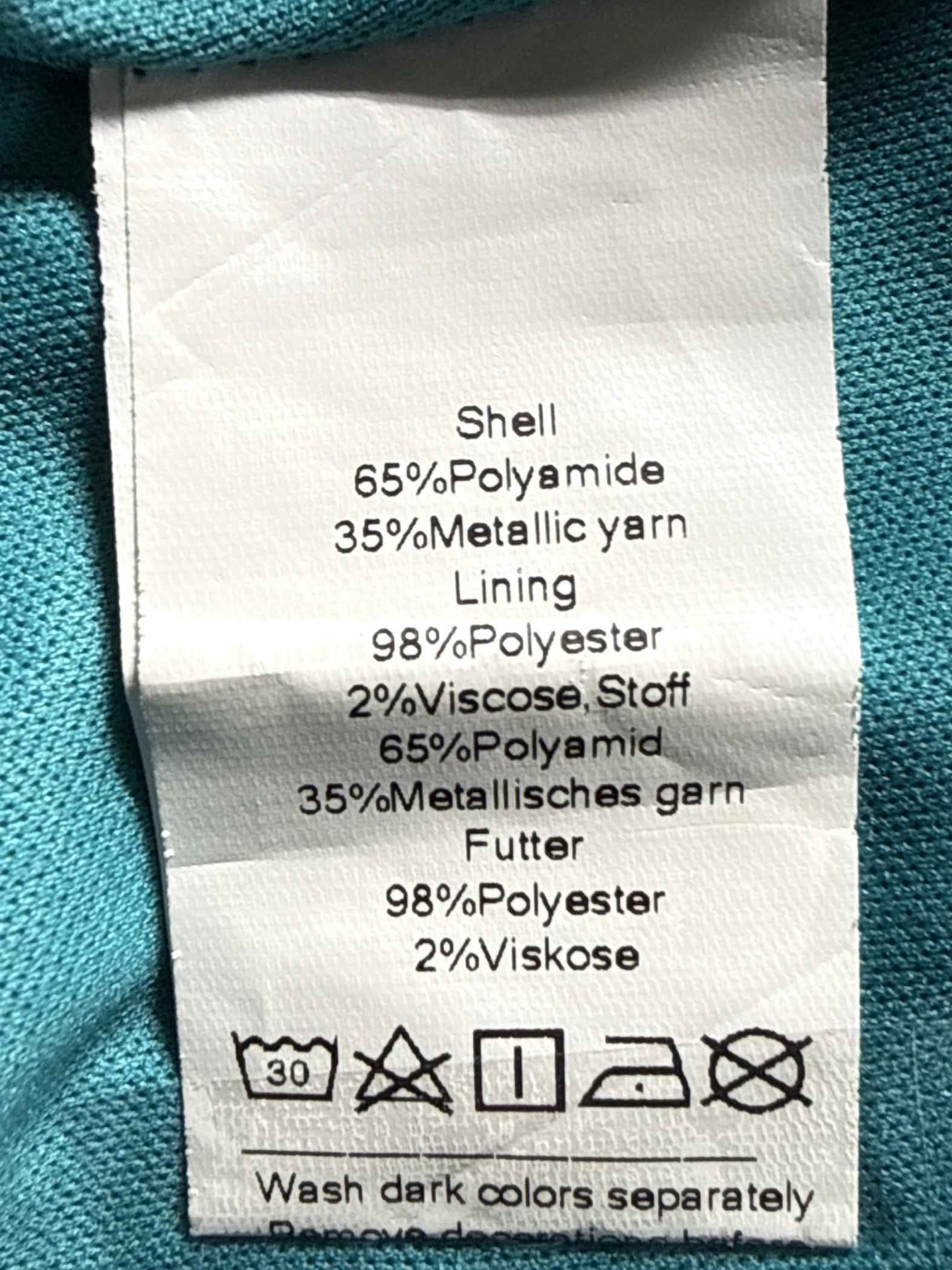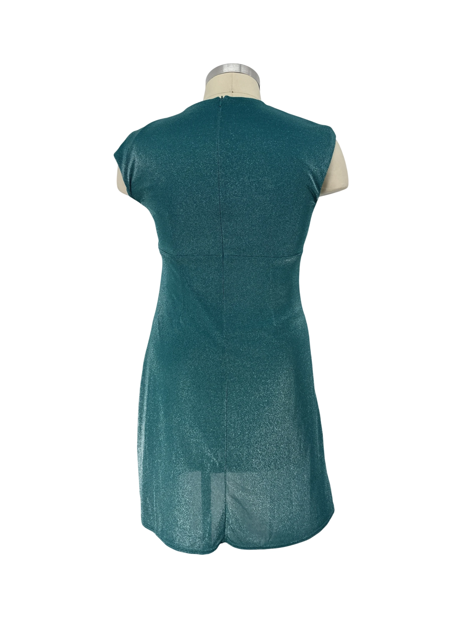 This stunning GRACE KARIN dress is a perfect blend of style and comfort. The teal metallic fabric shimmers beautifully, making it ideal for a night out or a special occasion. The A-line silhouette flatters any figure, while the V-neck and short sleeves add a touch of elegance. The dress is in excellent condition, offering both quality and affordability. A must-have addition to any fashion-forward wardrobe.
