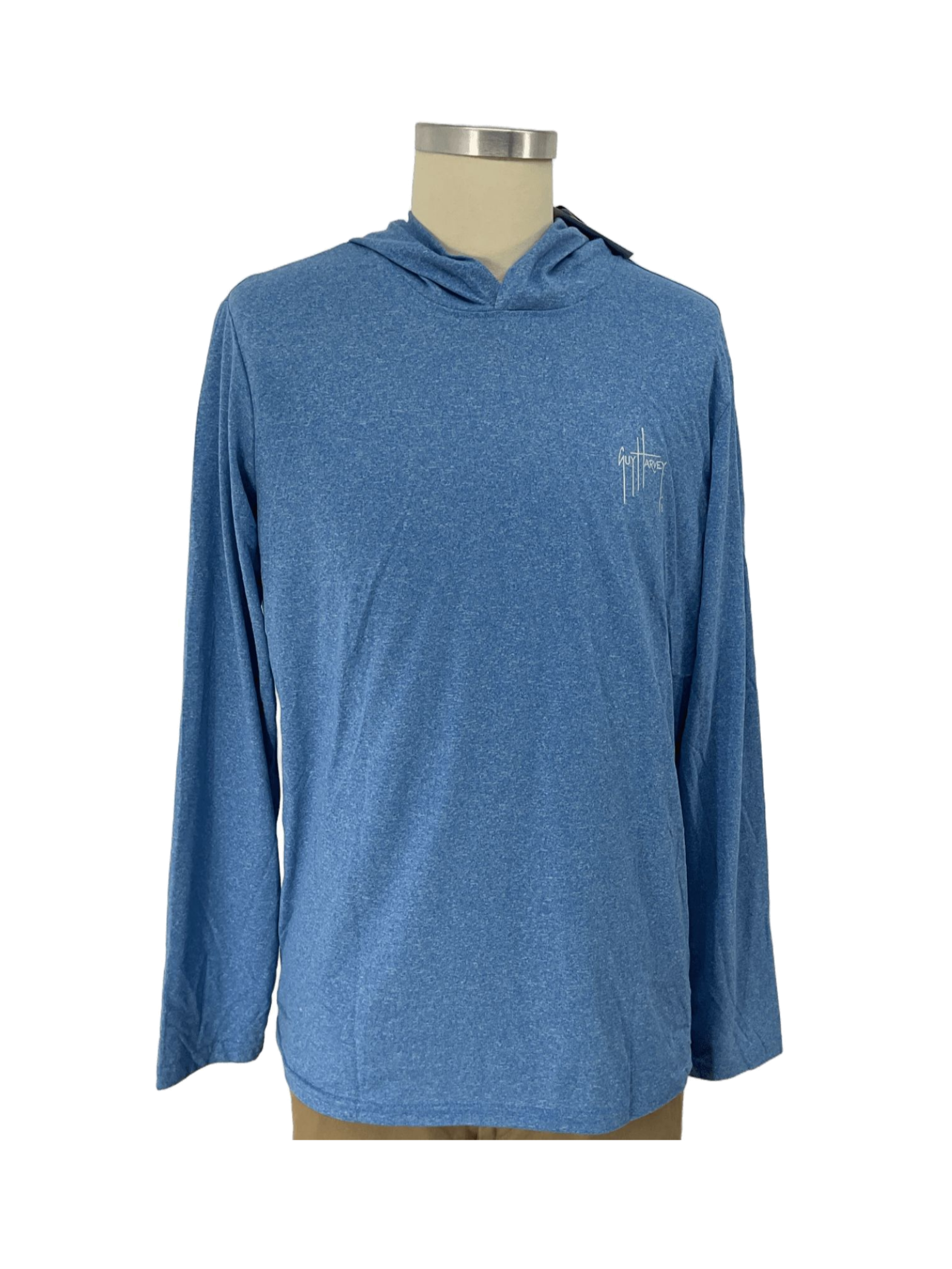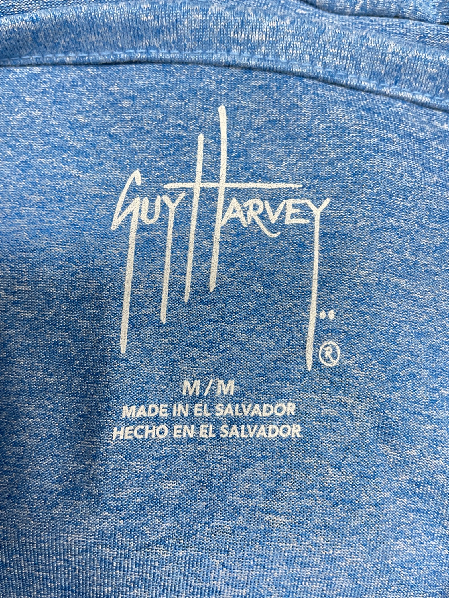 Guy Harvey light blue long sleeve hooded shirt for men size M with Mahi design.