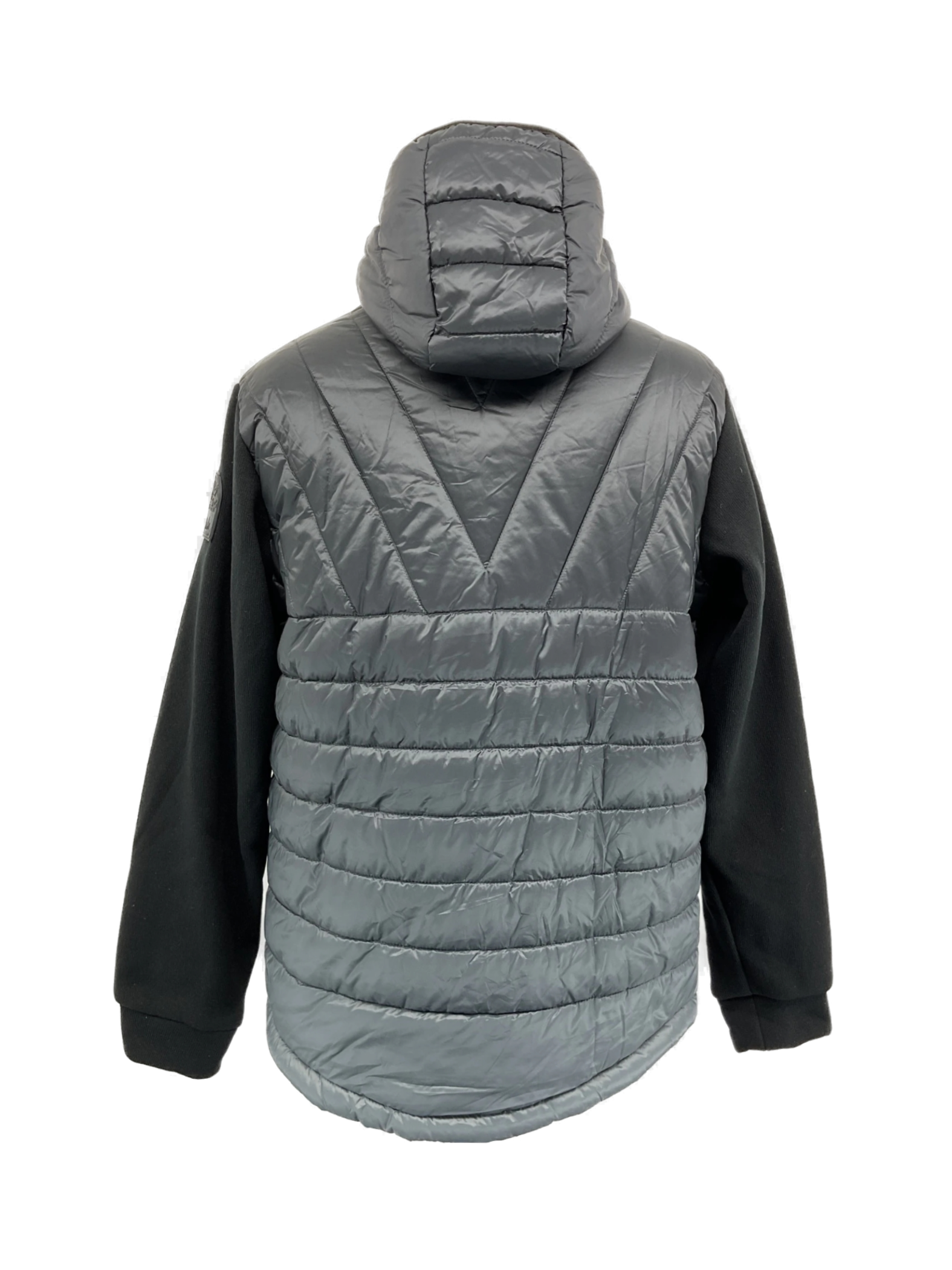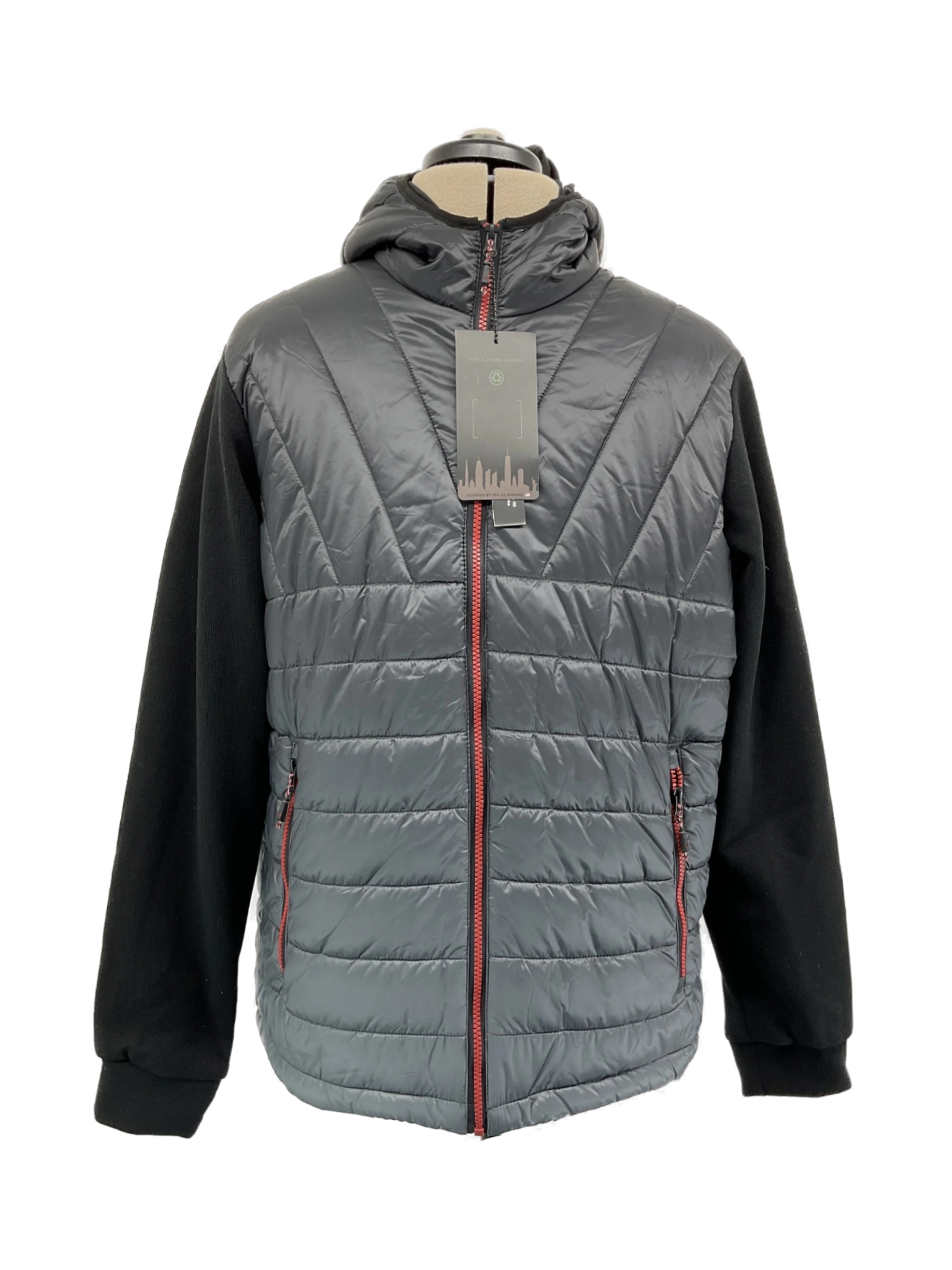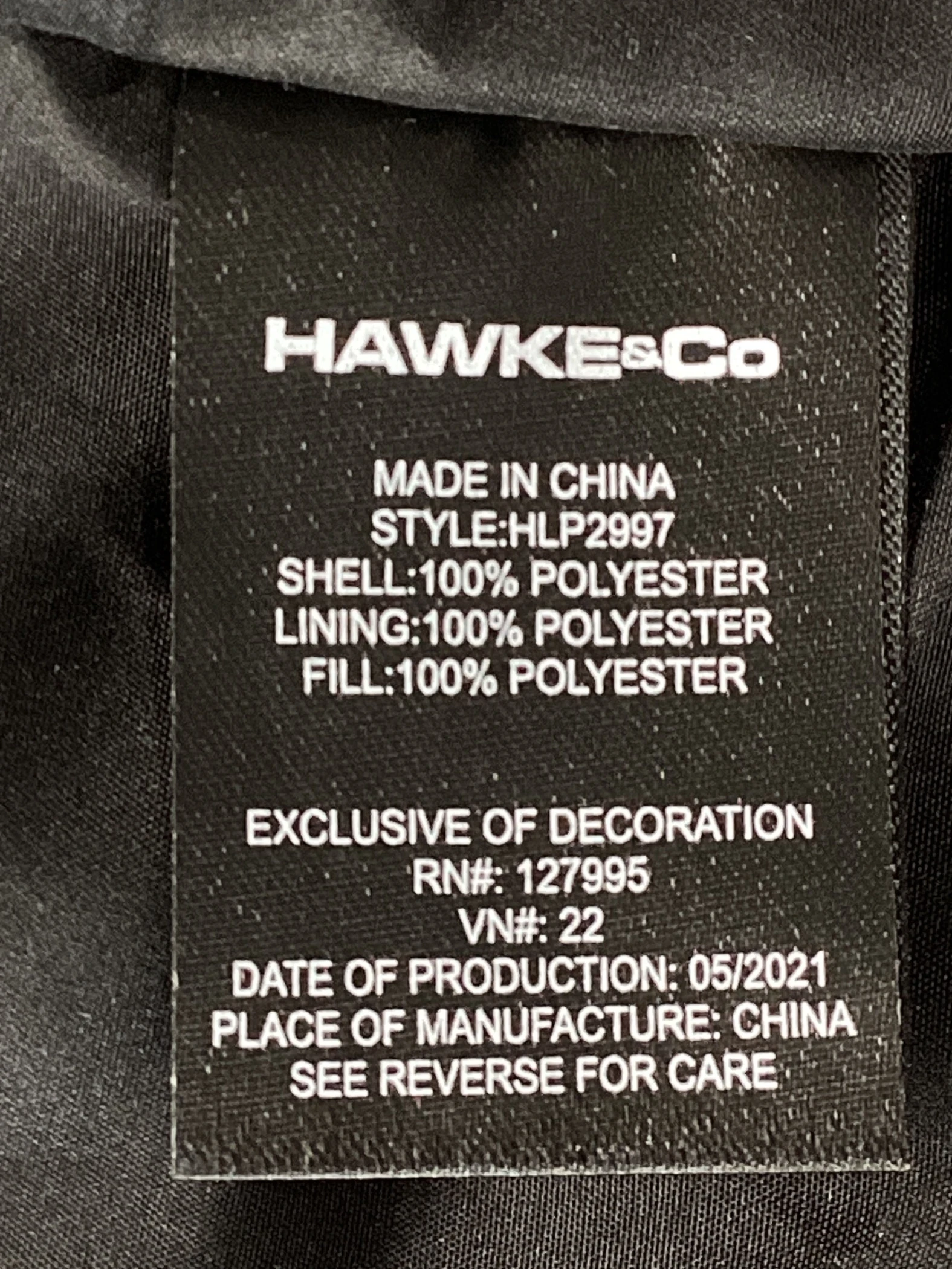 A men's Hawke and Co lined puffy hoodie in size XL is available in black and gray. It is made of 100% polyester.
