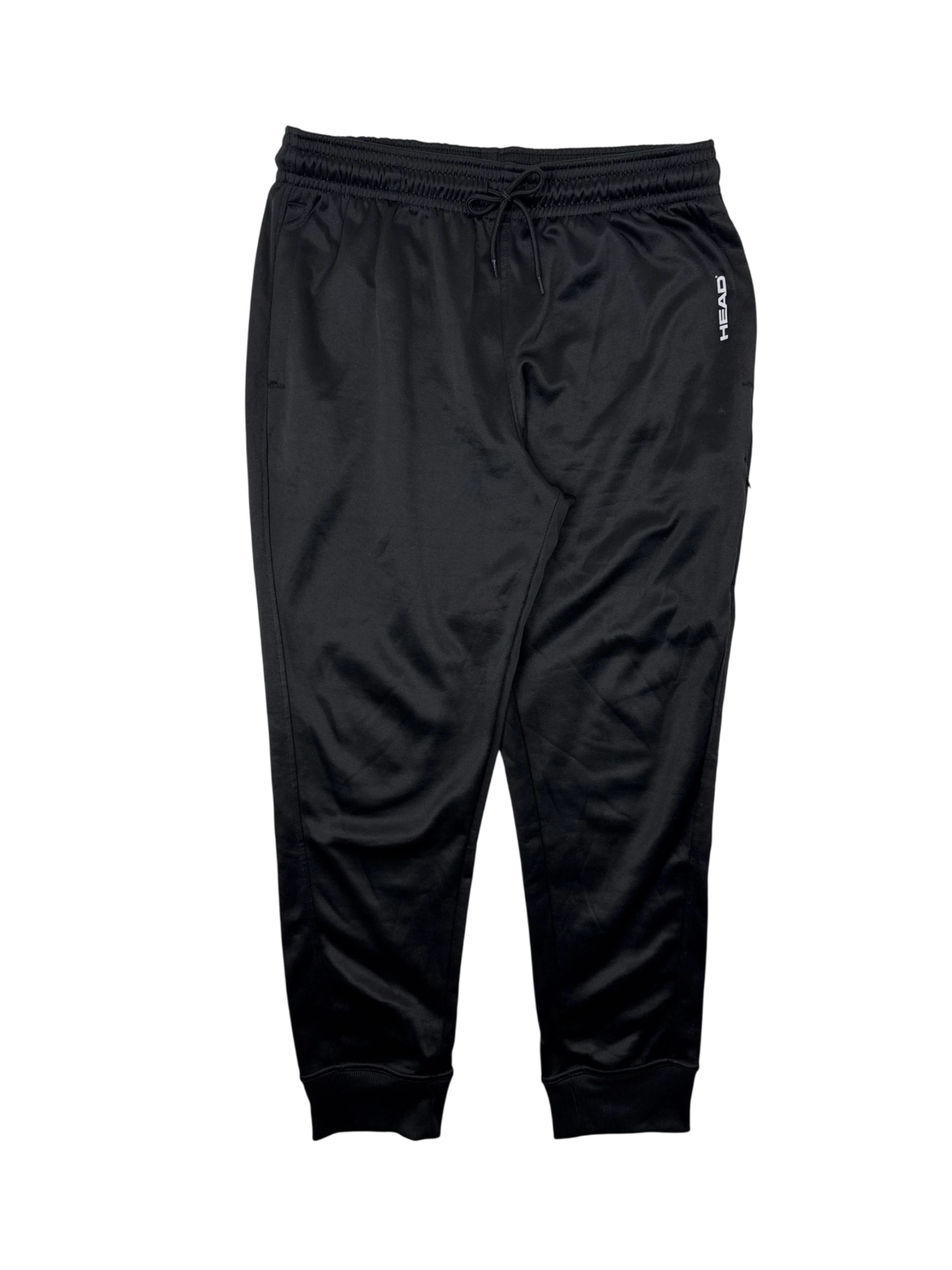 Elevate your activewear collection with these pre-owned HEAD men's sweatpants. Crafted from a comfortable blend of polyester and spandex, these joggers are designed for both performance and everyday wear. Featuring a classic black color, the pants are perfect for workouts, lounging, or casual outings. The L size ensures a comfortable fit. Get ready to experience style and comfort with this must-have piece for your active lifestyle.