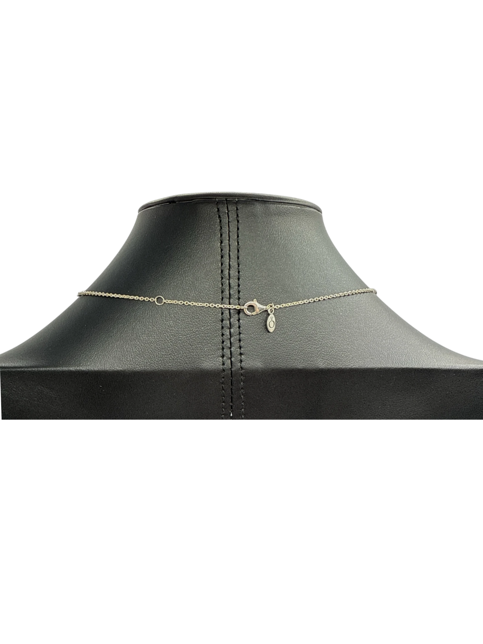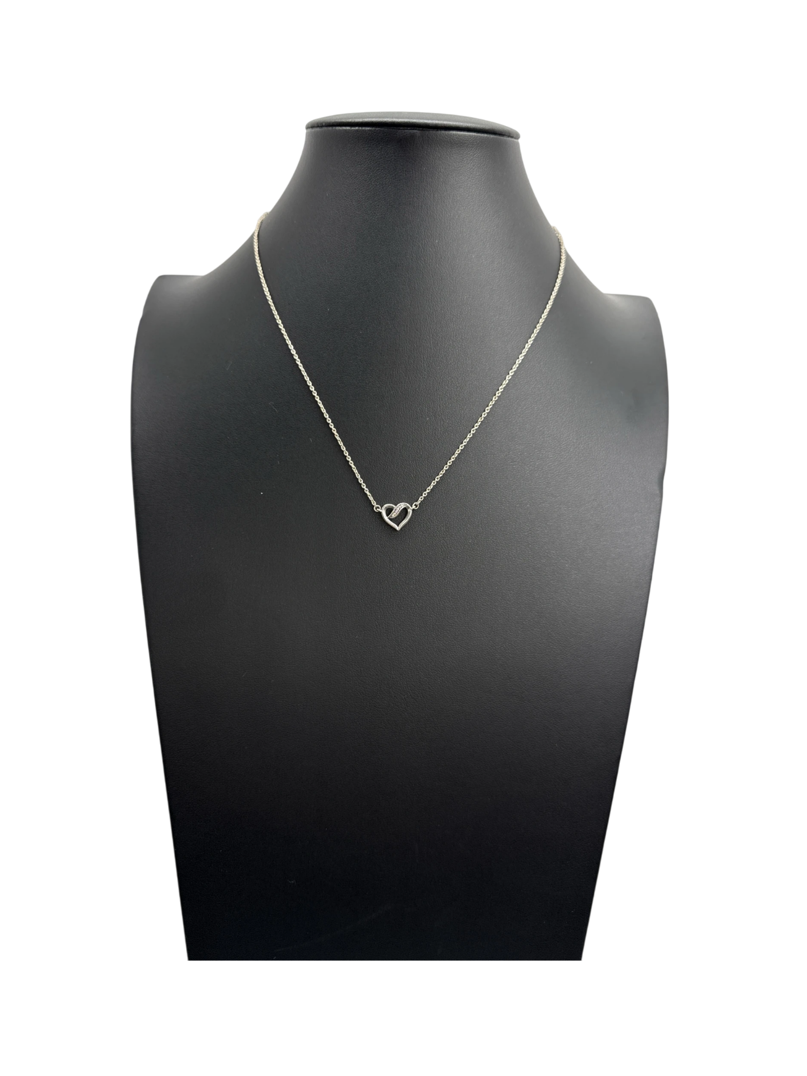 Heart pendant necklace with hanging pendant on a 17-inch chain.