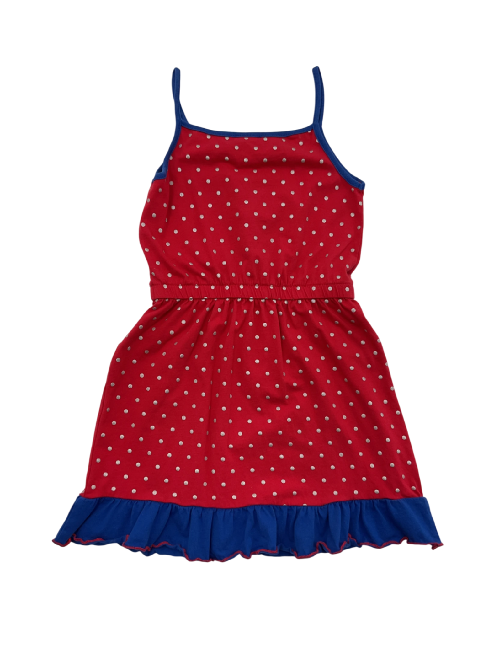 Hello Kitty & Sanrio Girls dress in rocker red, white, and blue, size 6 for kids.