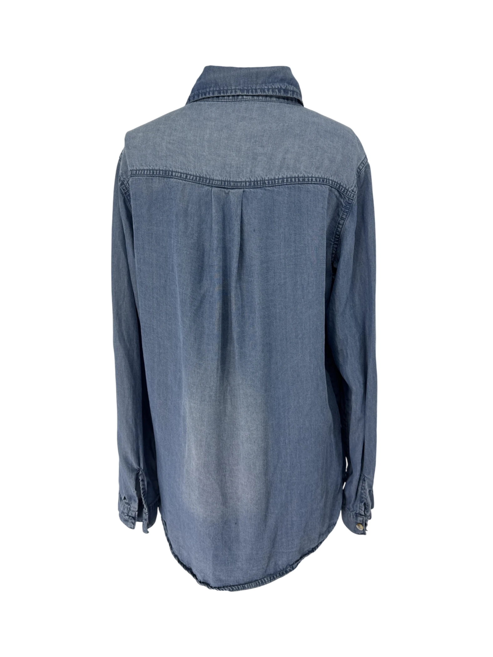 This pre-owned HHKPU denim button-up shirt offers a classic and versatile addition to your wardrobe. Crafted from a comfortable cotton blend, this light blue shirt features a traditional collar, long sleeves, and button-down front. It's a perfect lightweight layer for cooler weather, and its timeless design makes it suitable for various casual and smart-casual occasions. This is an excellent opportunity to own a quality denim shirt at an affordable price.