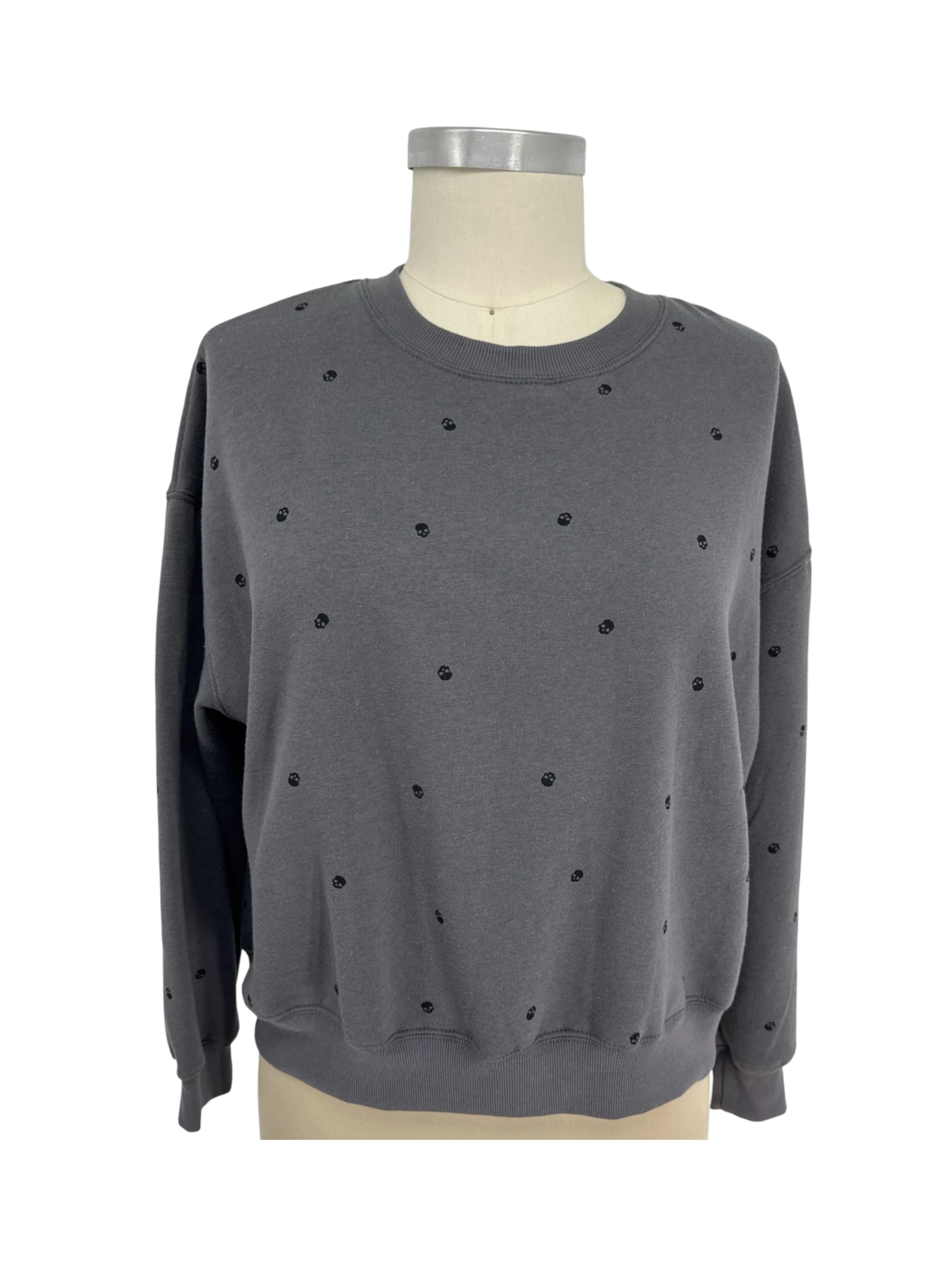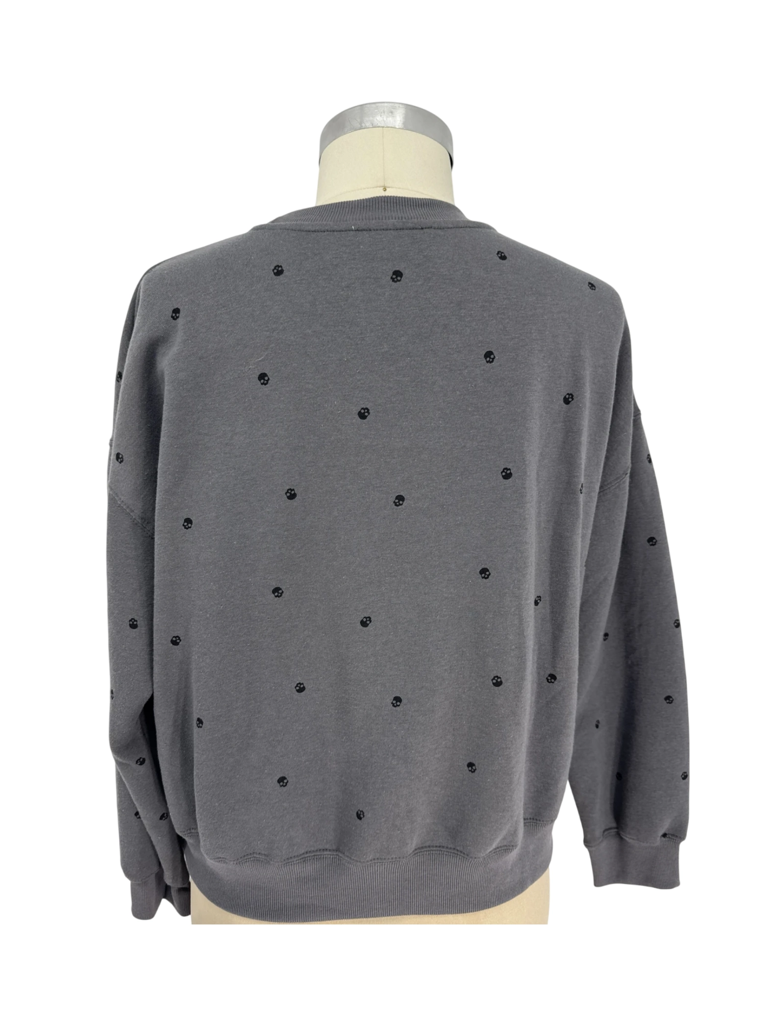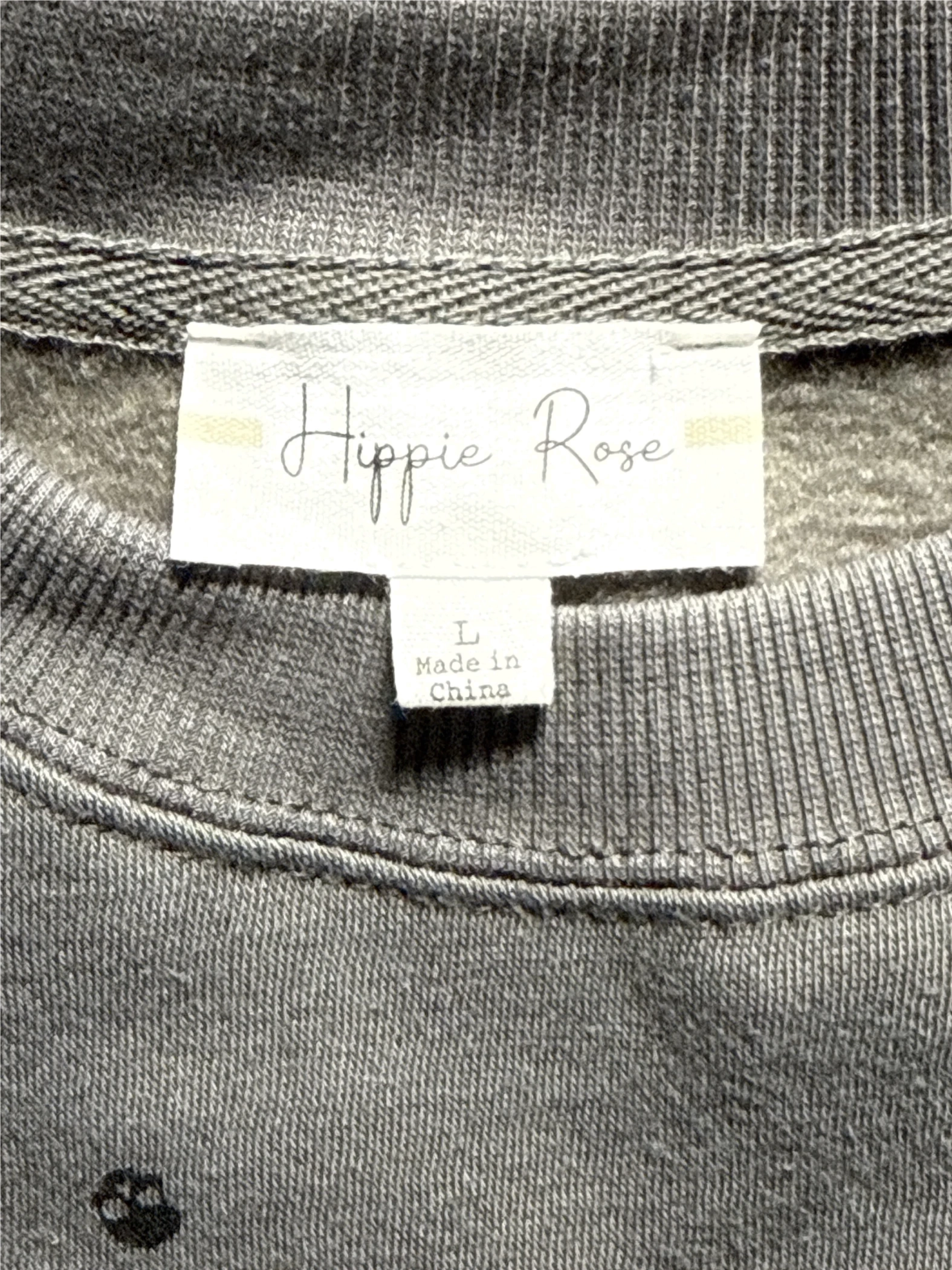 Elevate your casual wardrobe with this pre-owned Hippie Rose sweater. This cozy pullover features a classic crew neck, long sleeves, and a comfortable fit. Adorned with subtle black skull print, this versatile sweater is perfect for layering or wearing on its own. Made from a soft cotton-polyester blend, it offers both comfort and durability. Ideal for everyday wear, this sweater is a stylish and effortless addition to any outfit, suitable for cooler days and nights.