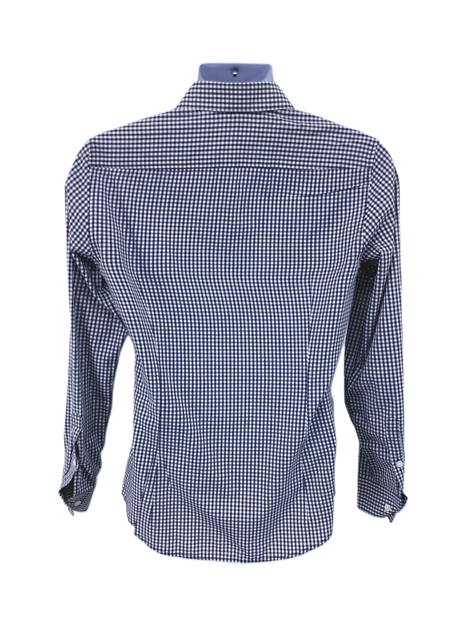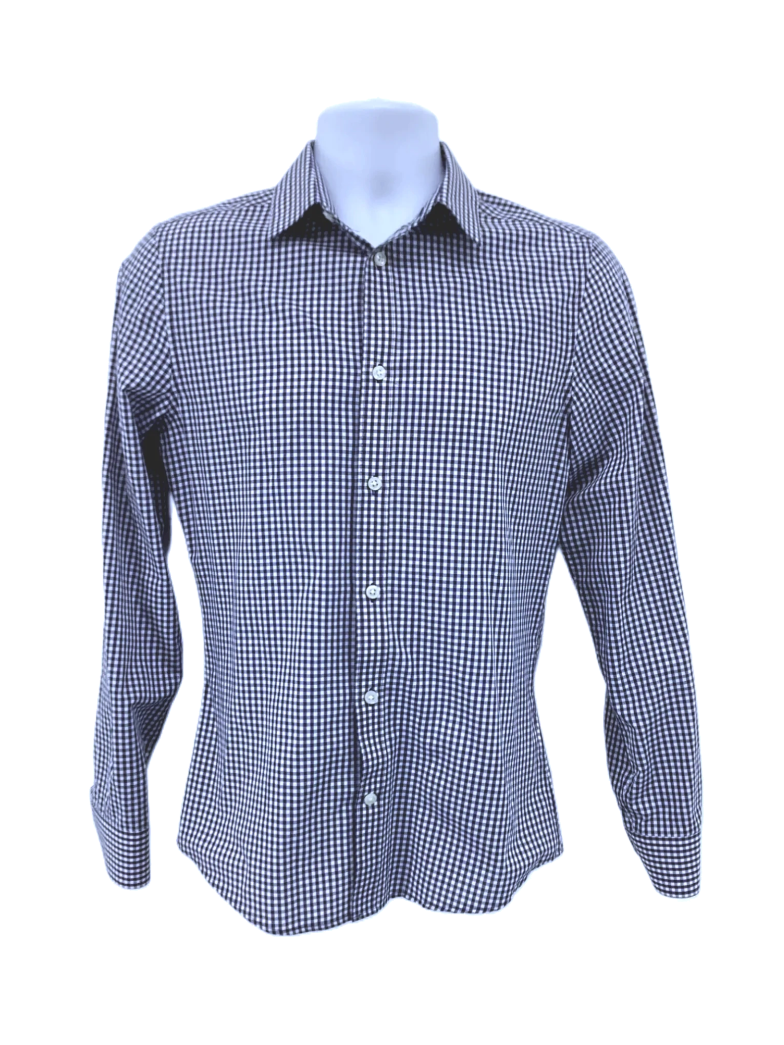 Elevate your wardrobe with this stylish H&M long sleeve shirt. Featuring a classic checkered pattern in blue and white, this pre-owned shirt is perfect for both casual and semi-formal occasions. Crafted from a comfortable blend of polyester and cotton, it offers a slim fit and easy-care convenience. Ideal for the fall and spring seasons, this shirt combines timeless style with modern comfort. Excellent condition, offering great value. This shirt is a great addition to any wardrobe. Made with quality materials, this shirt is sure to be a staple piece in your closet.