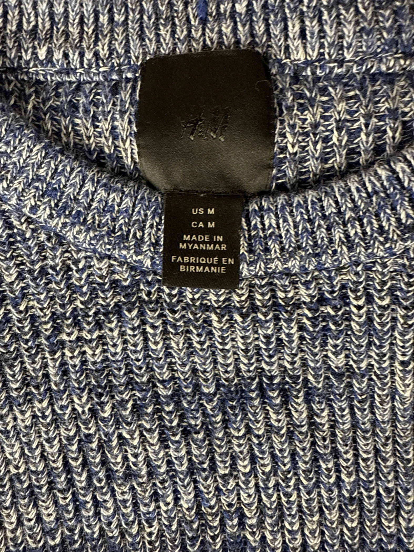 Elevate your casual wardrobe with this pre-owned H&M men's sweater. Crafted from soft, durable materials, this sweater features a classic crew neck and long sleeves. Its versatile design makes it ideal for layering or wearing on its own. The sweater's blend of blue and gray hues adds a touch of sophistication to any outfit. Perfect for cooler days, this sweater offers both comfort and style.