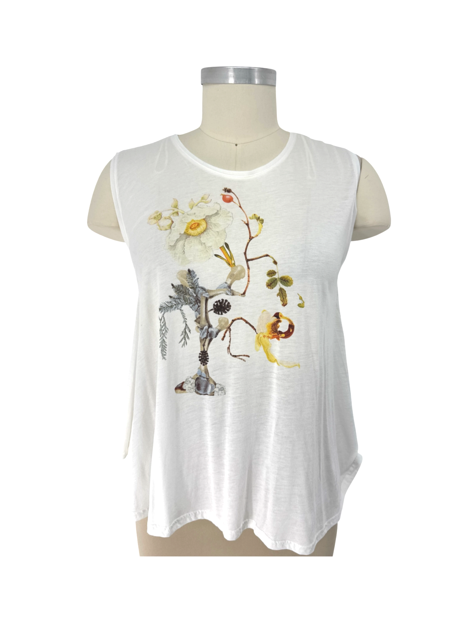 This pre-owned H&M Divided white tank top is perfect for adding a touch of floral elegance to your summer wardrobe. Featuring a beautiful floral design on the front, this sleeveless top is made from a comfortable blend of cotton and viscose. Ideal for warm weather, it can be dressed up or down, making it a versatile addition to any closet. It is in good condition and ready to wear.