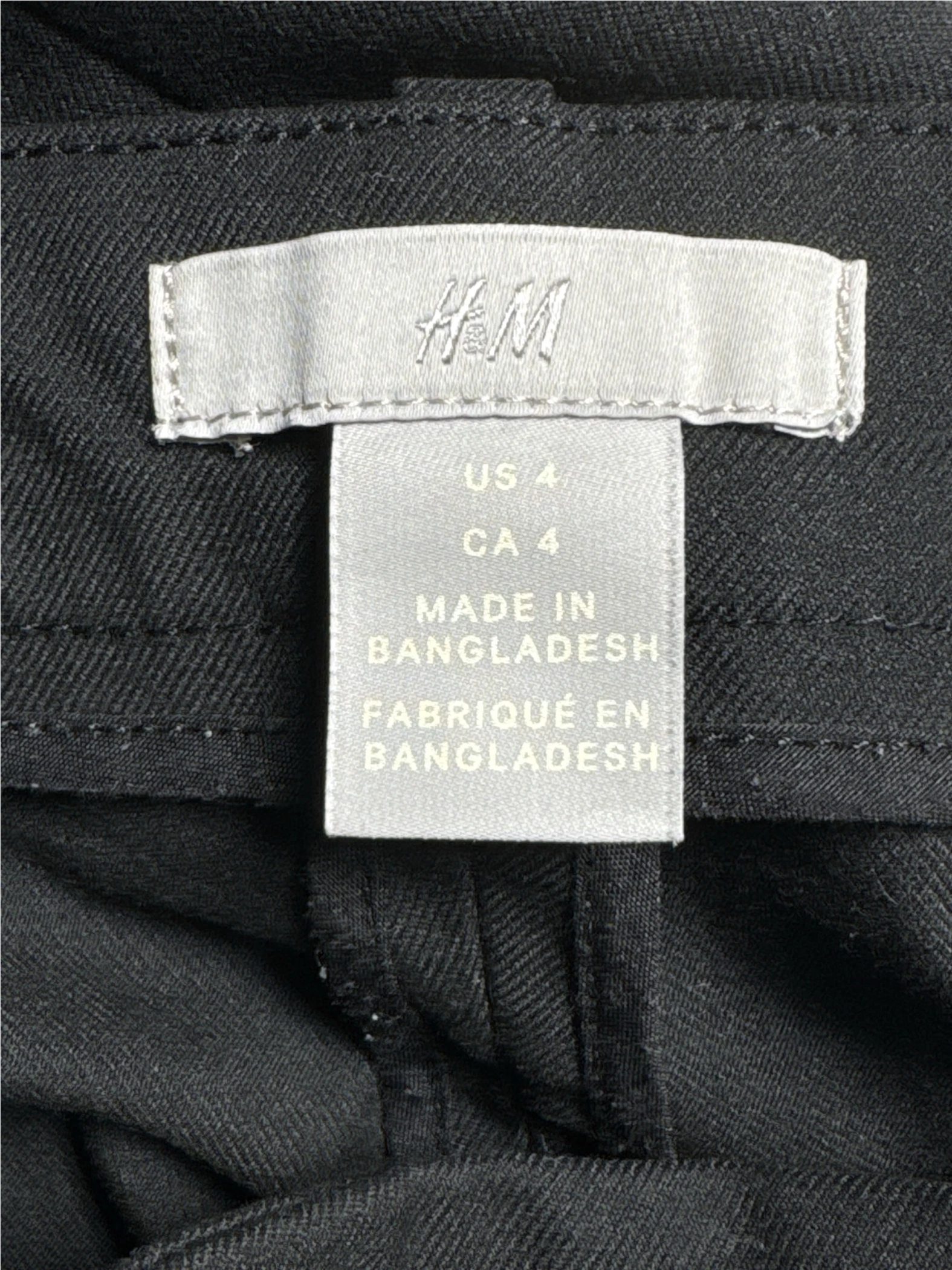 Elevate your wardrobe with these stylish, pre-owned H&M dress pants. These versatile black pants are perfect for any occasion, from the office to a night out. Crafted from a durable blend of polyester, viscose, and elastane, these pants offer a comfortable fit and a classic straight-leg silhouette. Pair them with a blouse and heels for a polished look or a casual top and flats for a more relaxed style. A timeless addition to any woman's closet.