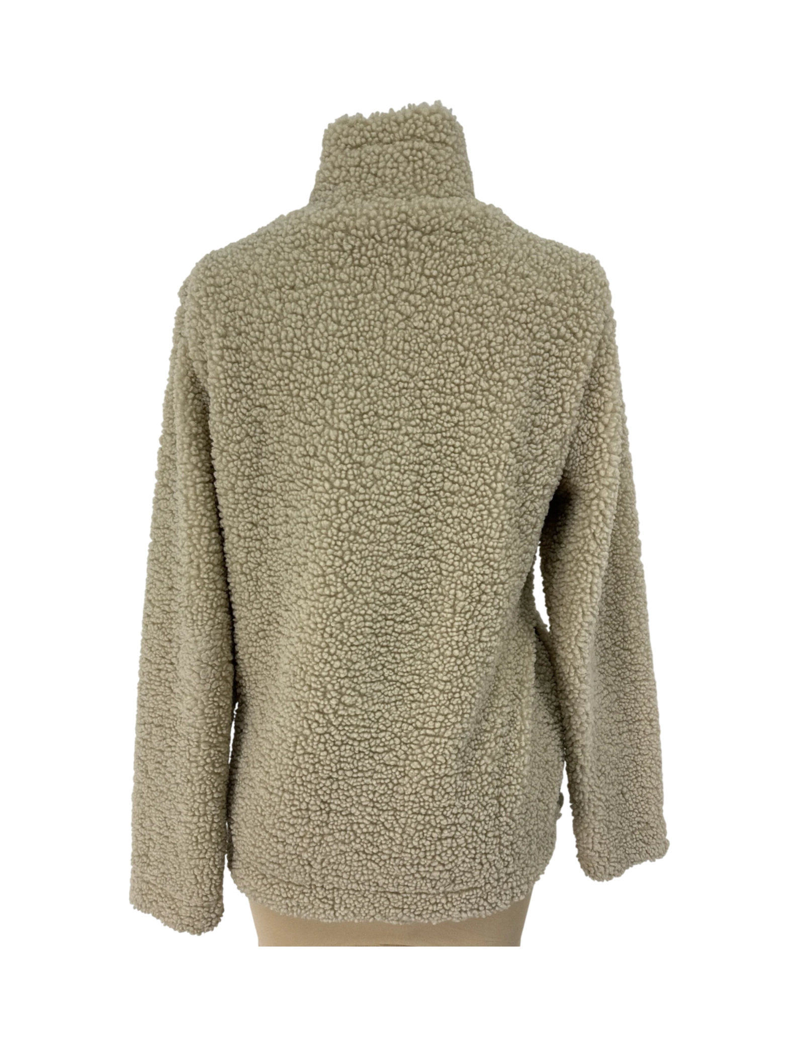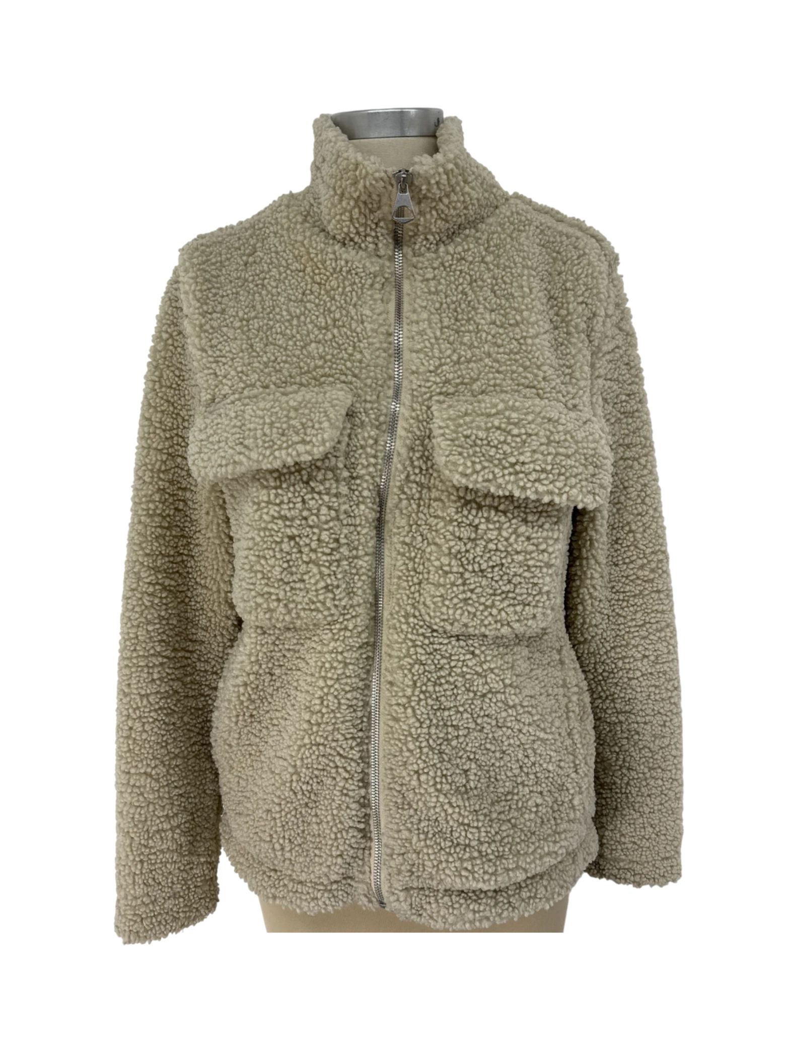 Cozy up in this pre-owned H&M fleece jacket, perfect for those chilly days. This stylish jacket is in great condition and features a warm, textured exterior in a versatile beige color. It is designed for a comfortable regular fit and includes pockets for convenience. Made from a blend of polyester and cotton, this jacket combines warmth with durability. Ideal for layering, this jacket offers a blend of comfort and practicality.