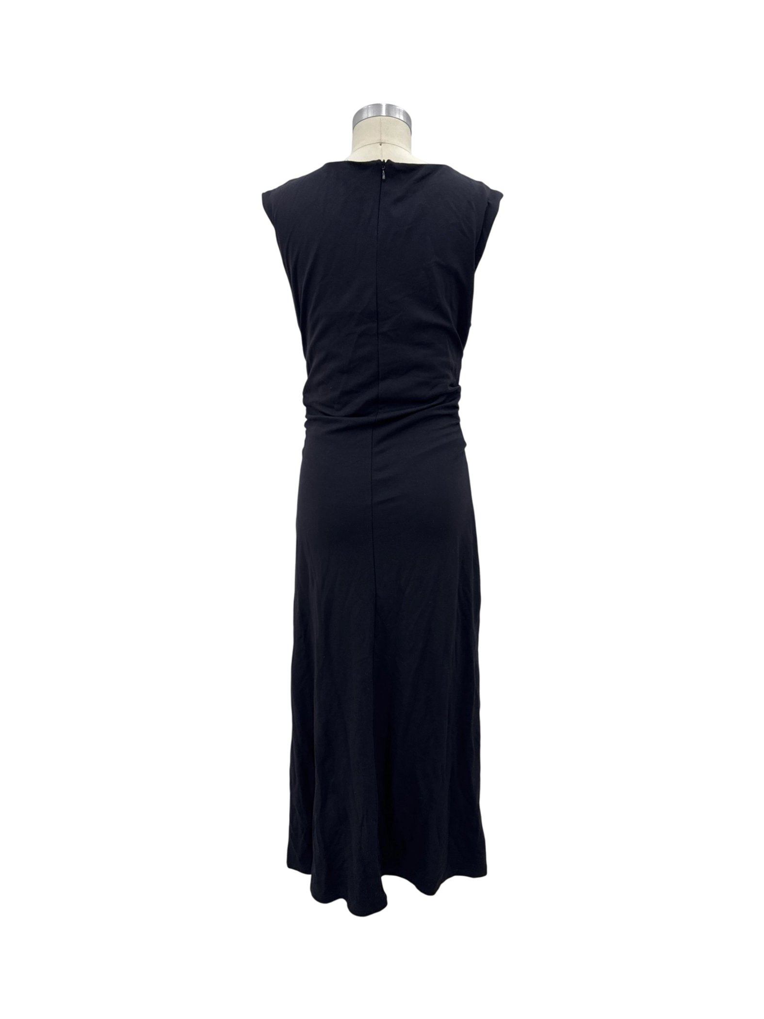 This elegant H&M dress is perfect for any casual occasion. Featuring a flattering A-line silhouette with a sheath design, it drapes beautifully. The sleeveless design and round neck create a minimalist look. Crafted from a blend of polyester, viscose, and elastane, it offers comfort and a soft drape. This pre-owned maxi dress in a classic black color, makes it a timeless addition to your wardrobe.