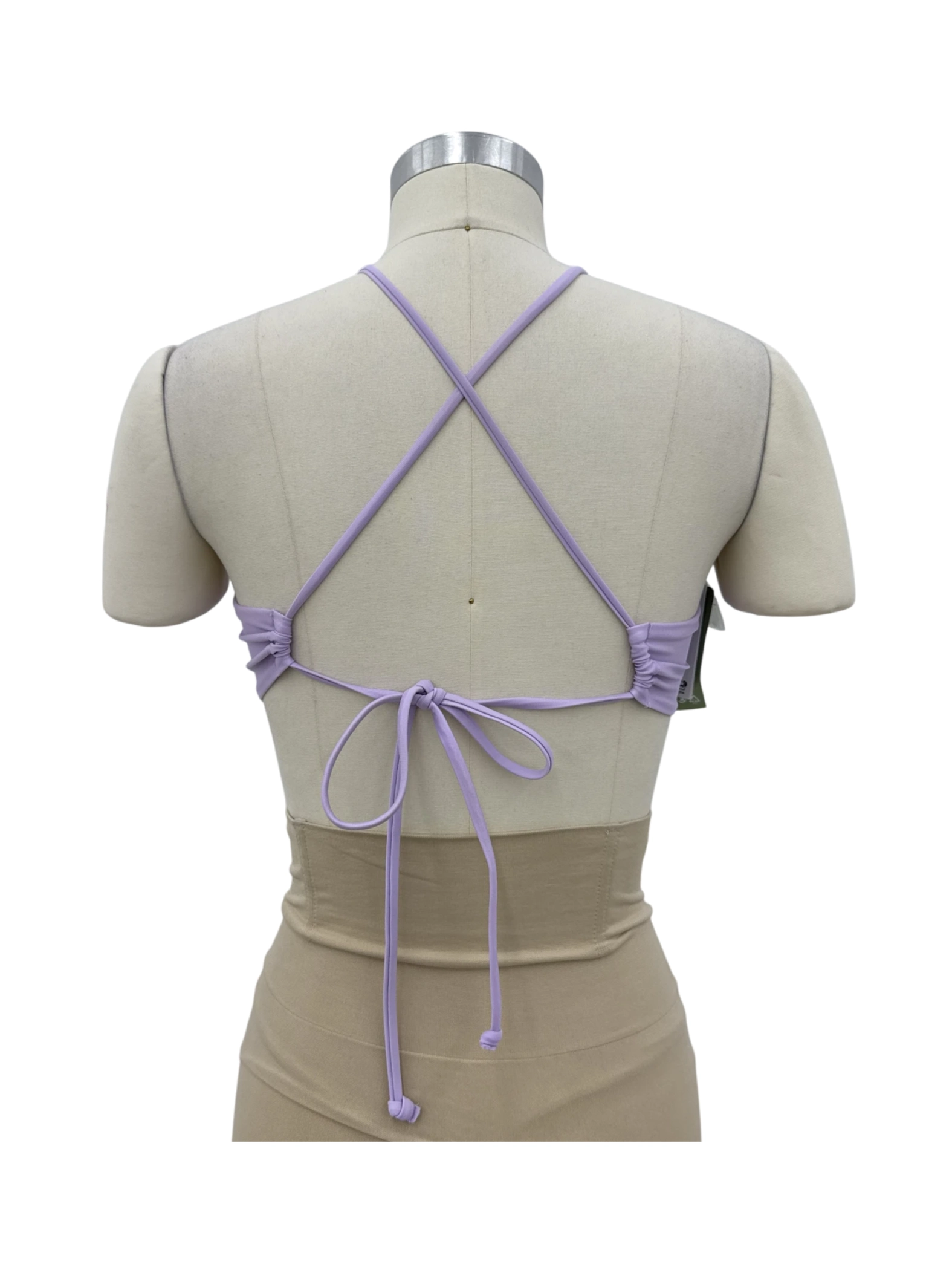 This pre-owned H&M bikini top in a stylish lilac color is perfect for your next beach day. Made from recycled polyester, it offers both comfort and sustainability. The criss-cross back design adds a touch of elegance, while the adjustable tie ensures a perfect fit. This top is a great addition to your swimwear collection, offering both style and eco-consciousness. A perfect choice for those who want a cute and comfortable bikini that will last.