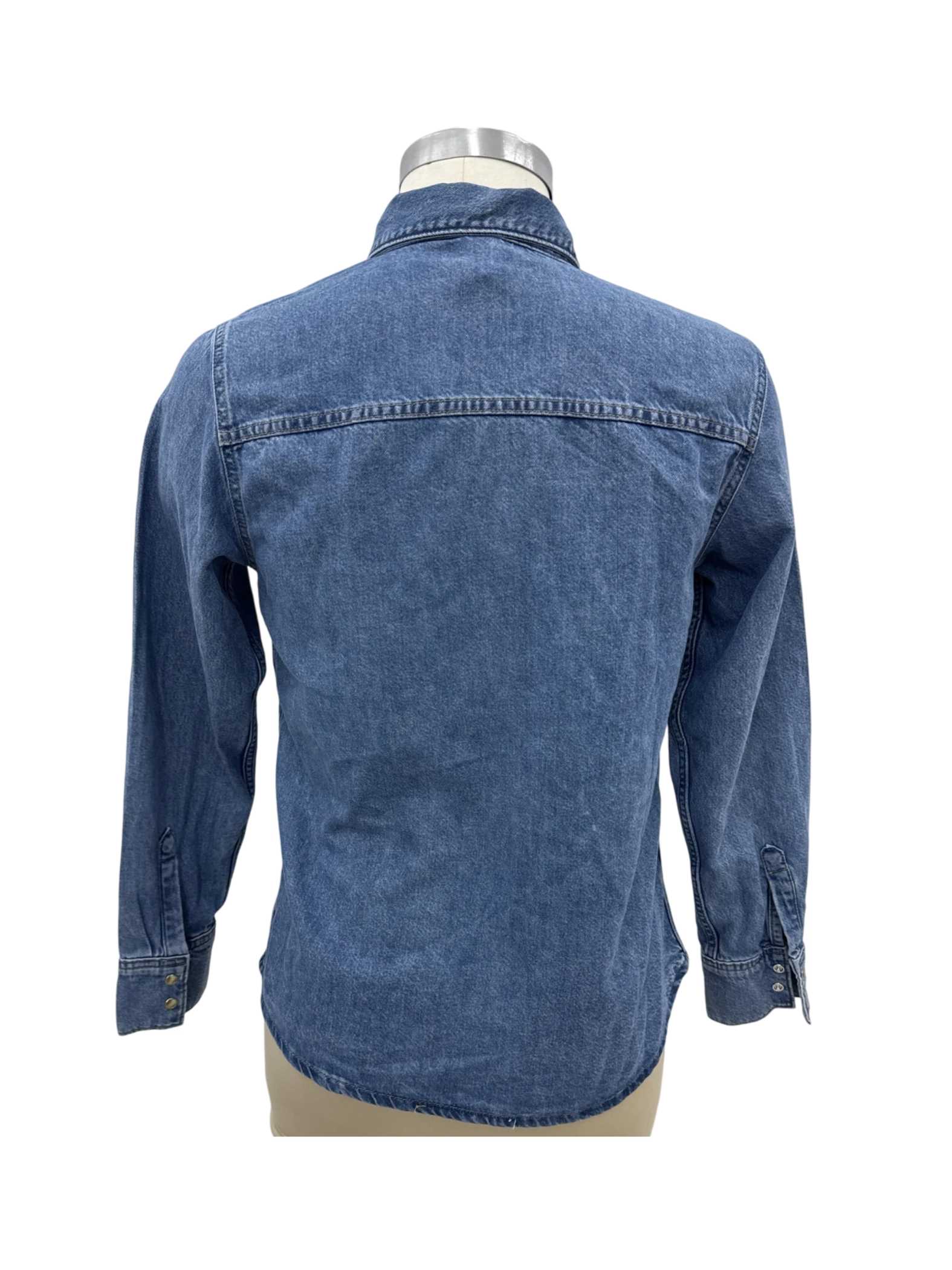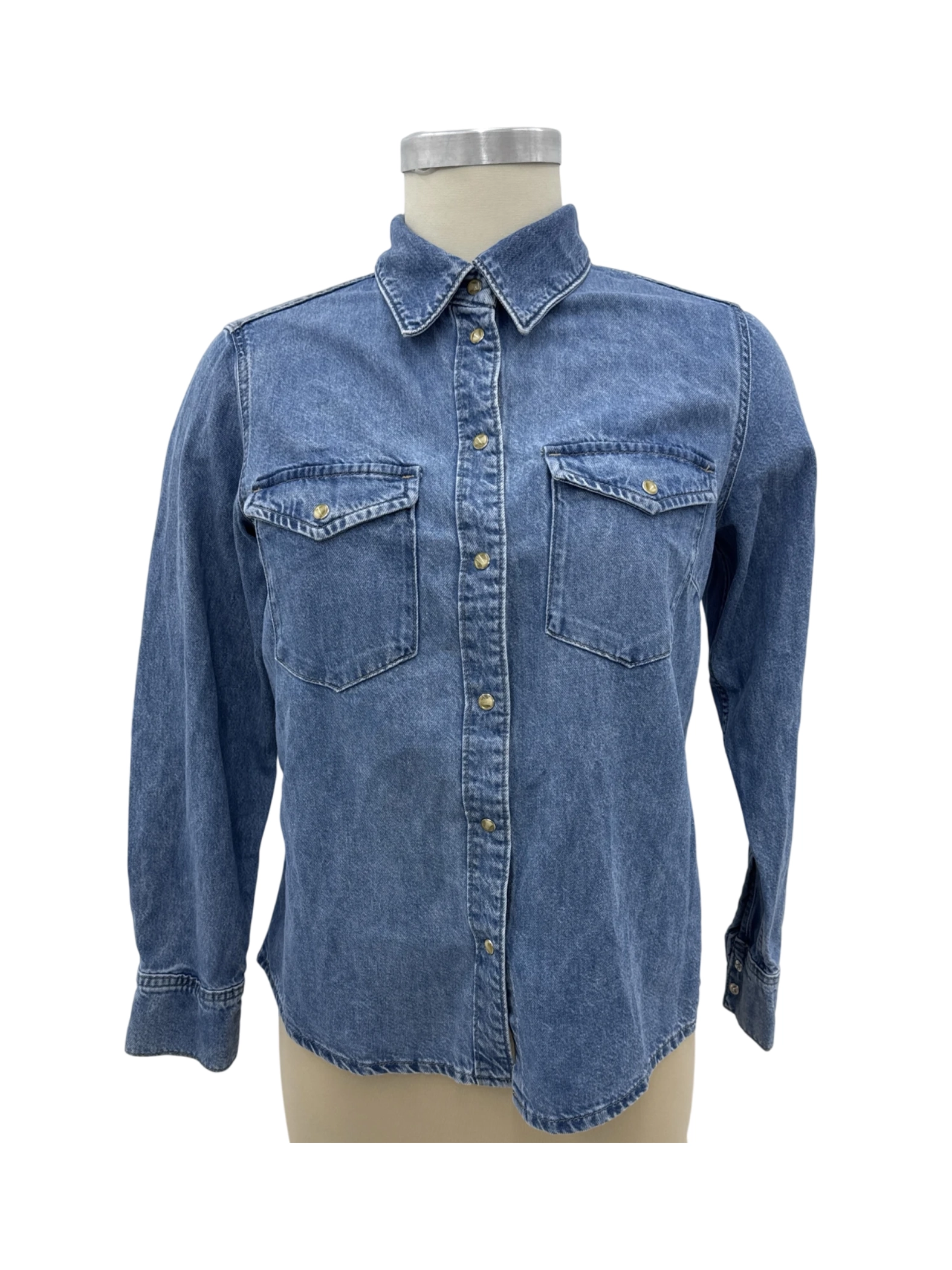 Elevate your wardrobe with this stylish and versatile pre-owned H&M denim shirt. Crafted from a blend of cotton and lyocell, this button-up shirt offers both comfort and durability. Featuring a classic collar and long sleeves, this shirt is perfect for layering or wearing on its own. The denim wash adds a timeless touch. This shirt is a must-have for your everyday wear. Excellent condition.