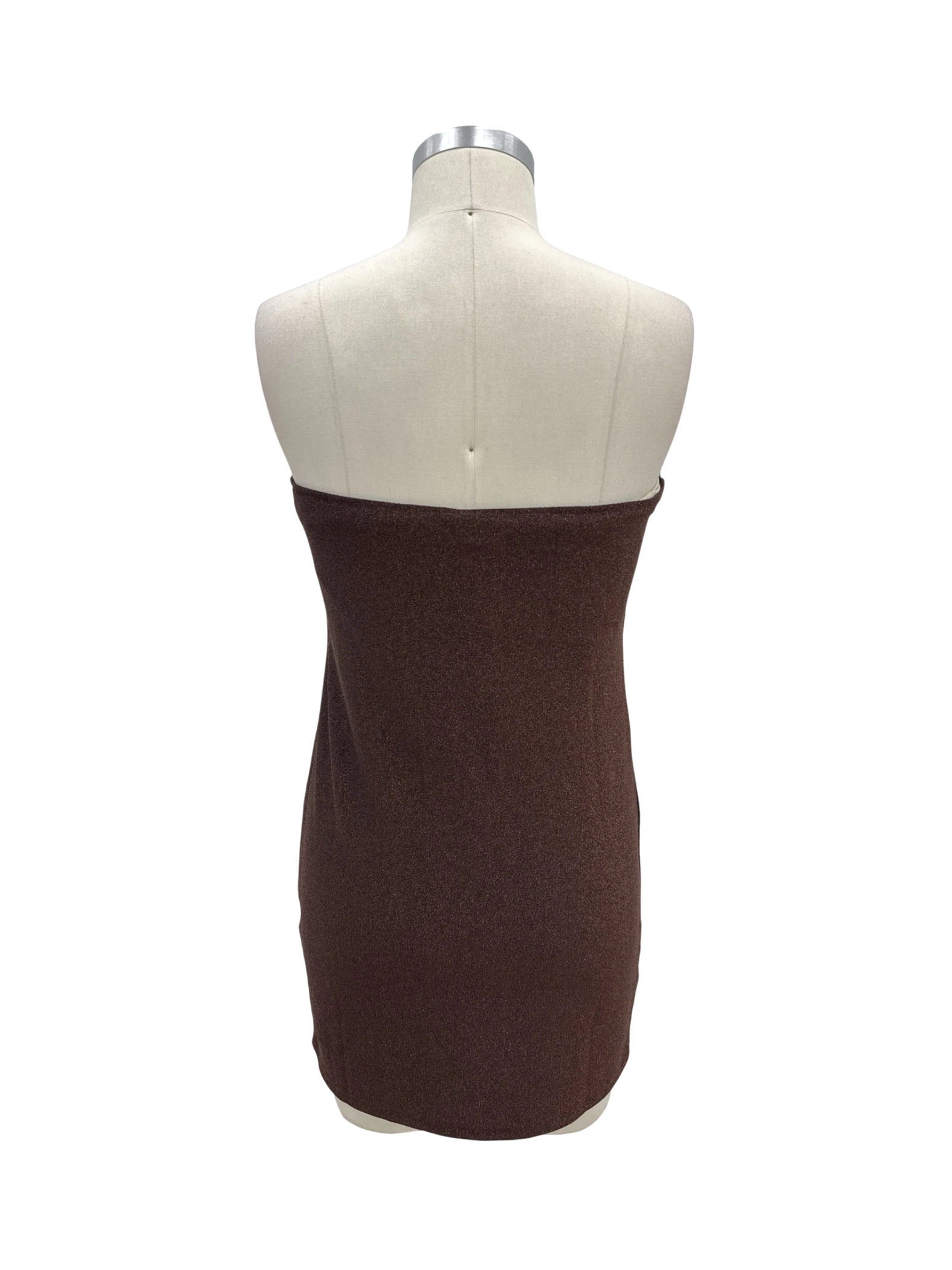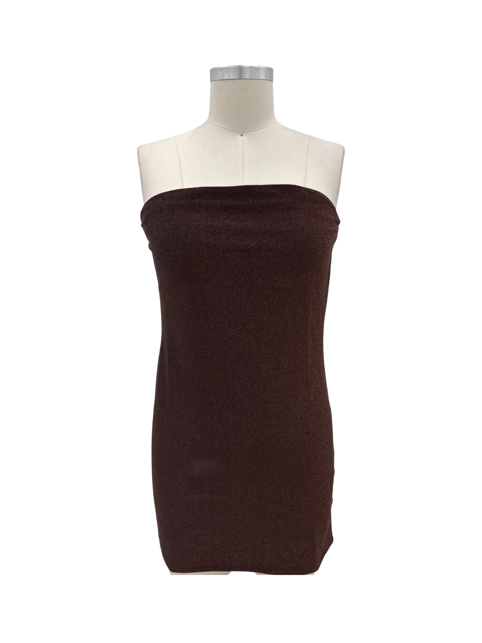 This pre-owned H&M bodycon dress is a chic addition to any wardrobe. Featuring a strapless design, the dress is perfect for a night out or a casual gathering. The metallic brown color adds a touch of glamour, while the polyester and elastane blend offers a comfortable and flattering fit. The mini skirt length and sleeveless cut make it ideal for warmer weather or layering. A versatile piece that can be dressed up or down.