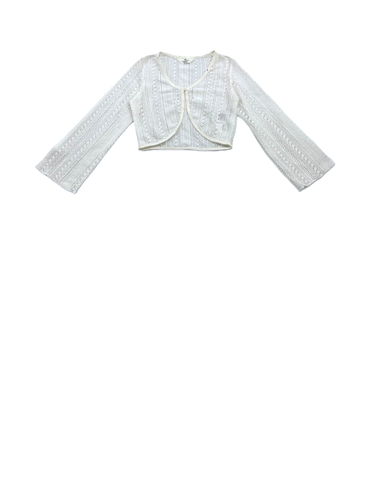 This women's cropped ivory cardigan in size 12/14 may have several small, washable stains that can be removed with proper treatment.