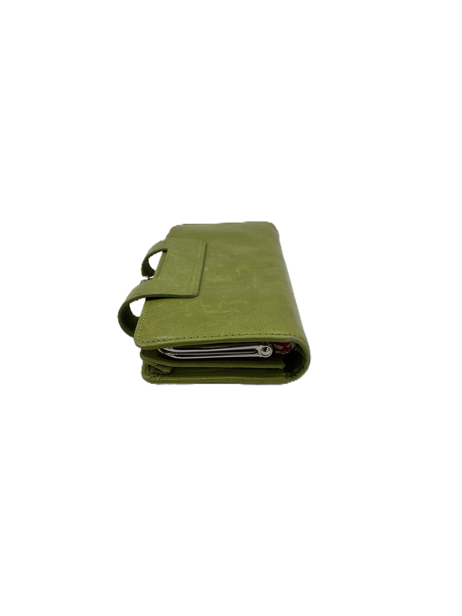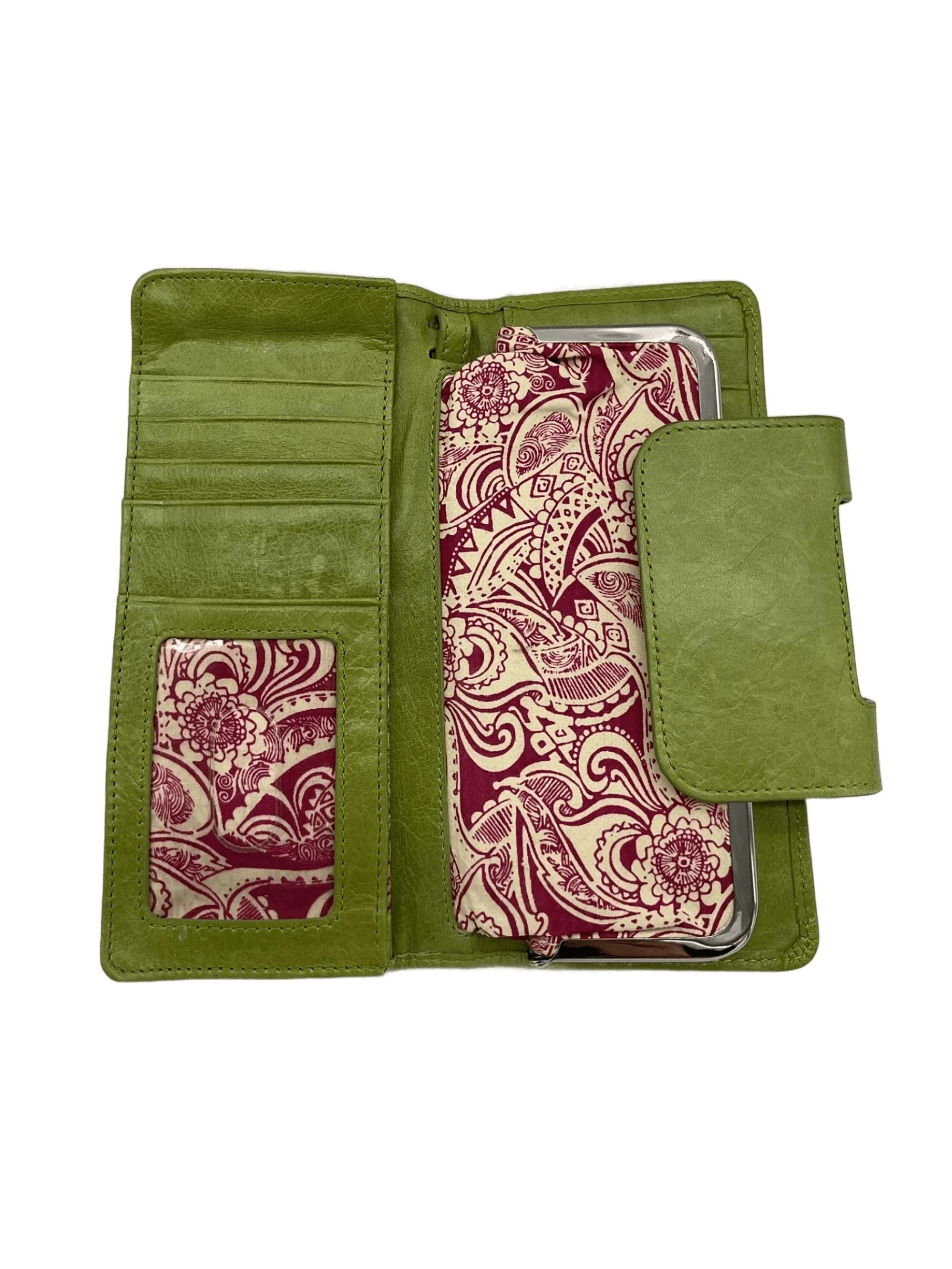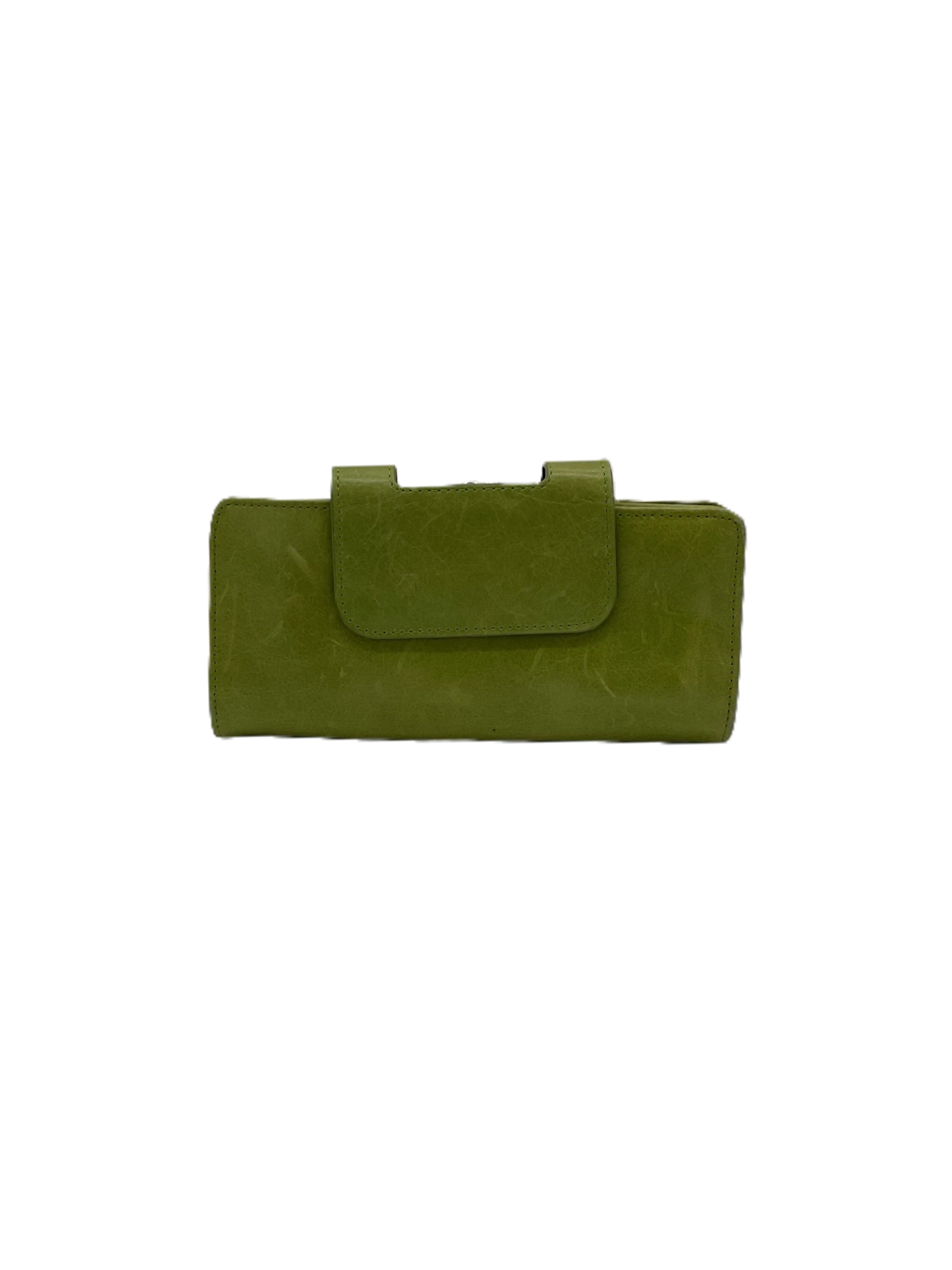 The green Hobo International Nancy Wallet is available. Please refer to the photos for any signs of wear and additional details.