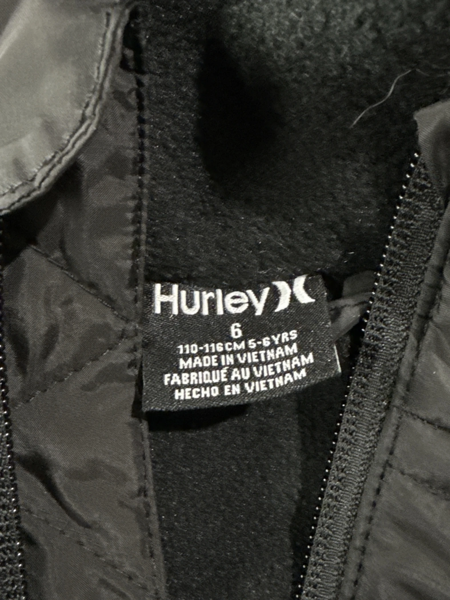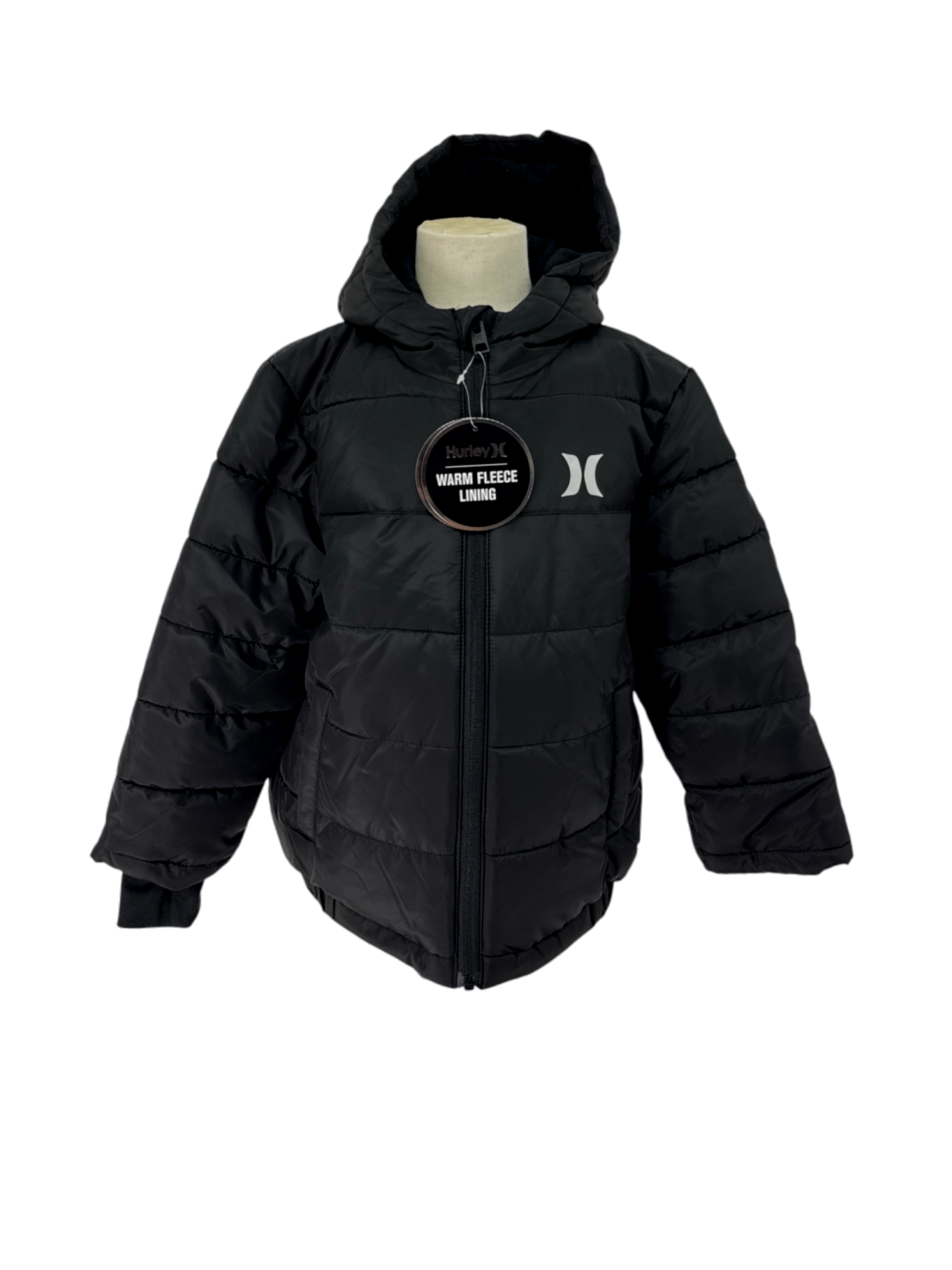 A Hurley winter hooded puffer jacket for boys in size 6Y.