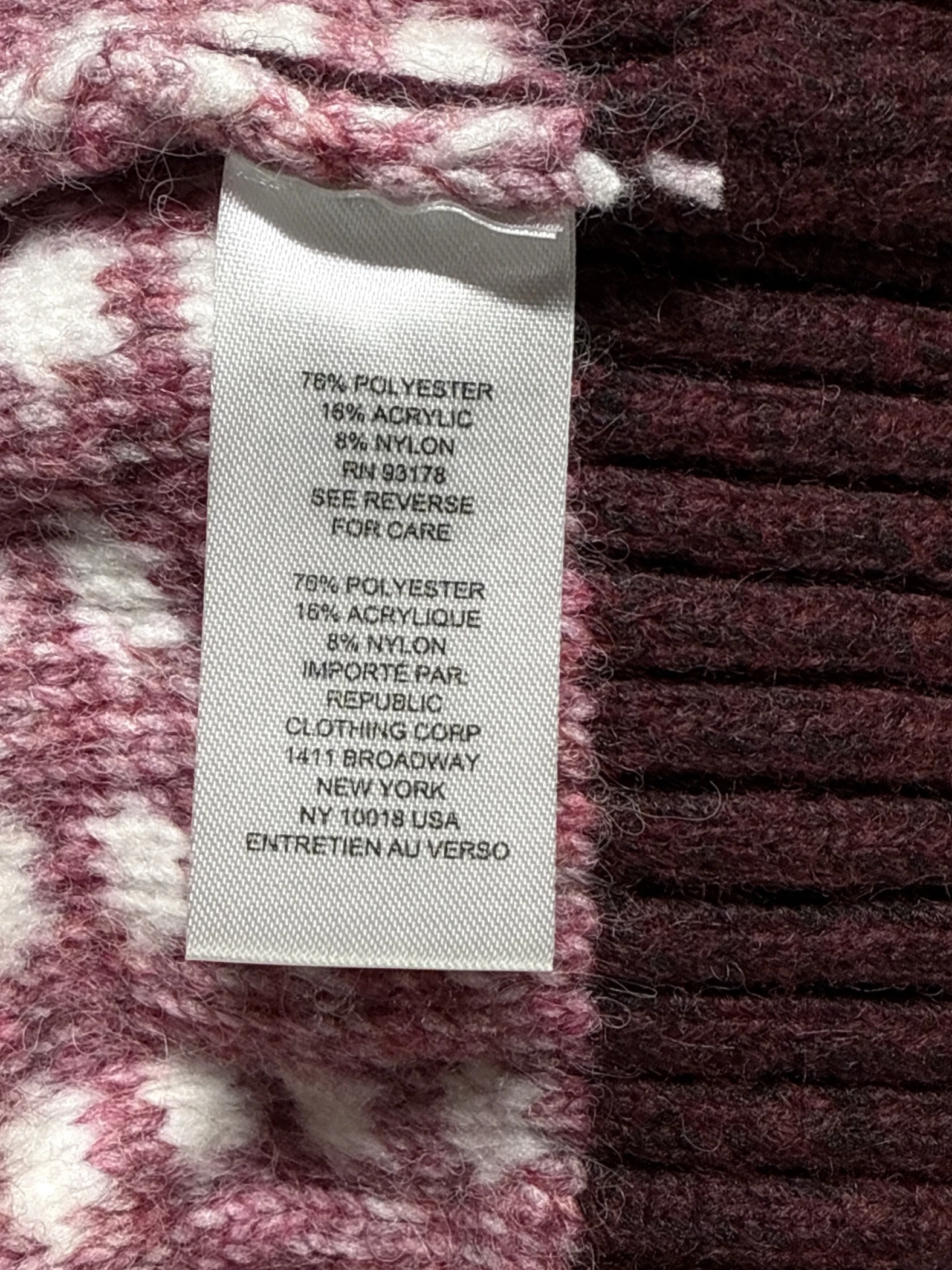 Cozy up in style with this pre-loved INDUSTRY turtleneck sweater, perfect for chilly days. This sweater features a beautiful stripe pattern in shades of white, pink and maroon and is crafted from a comfortable blend of polyester, acrylic, and nylon. Ideal for layering, this sweater is a versatile addition to any wardrobe. Embrace a mix of warmth and fashion with this unique, secondhand find.