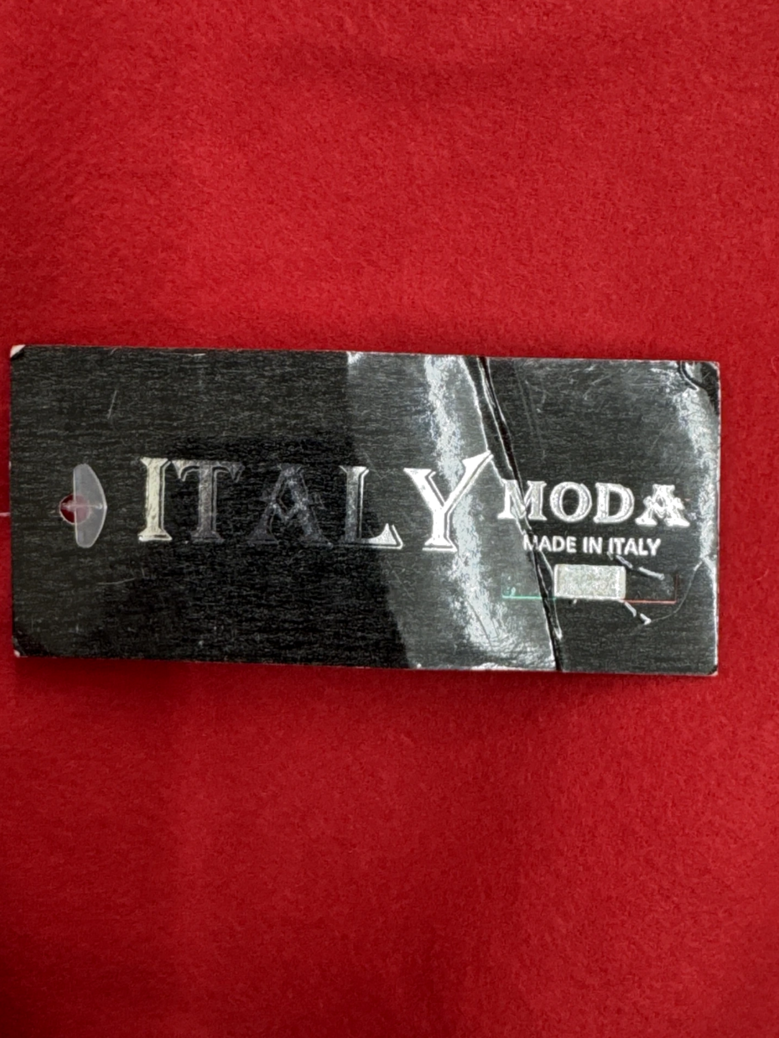 Elevate your outerwear collection with this stylish, pre-owned ITALY MODA red cardigan. Crafted in Italy, this piece features a classic design with a unique collar and button closure. The vibrant red color adds a pop of sophistication to any outfit. This cardigan is a versatile addition to your wardrobe, perfect for layering during the cooler seasons. Made with high-quality materials, this cardigan offers both comfort and style. It's an excellent choice for anyone seeking a blend of fashion and functionality.