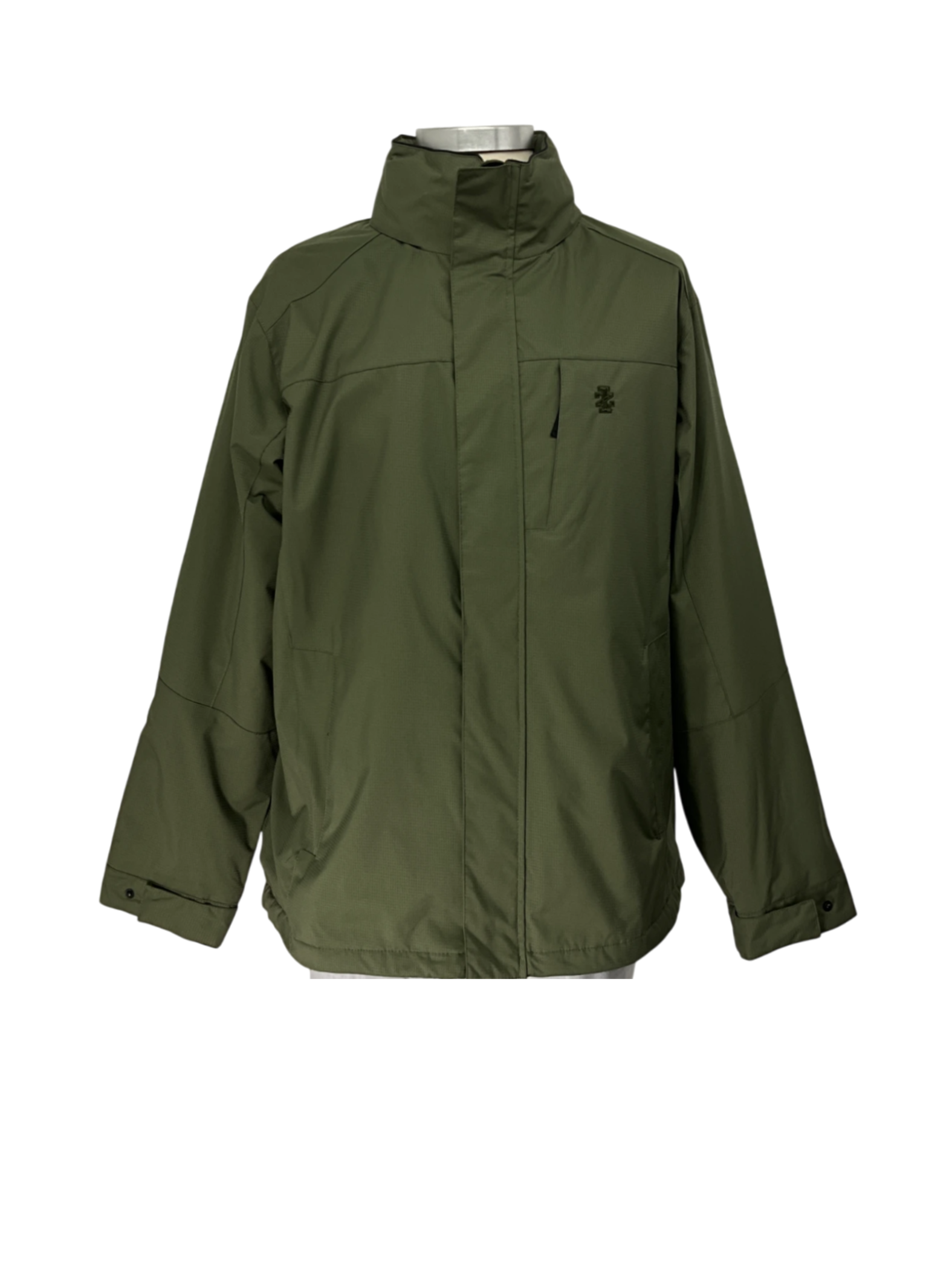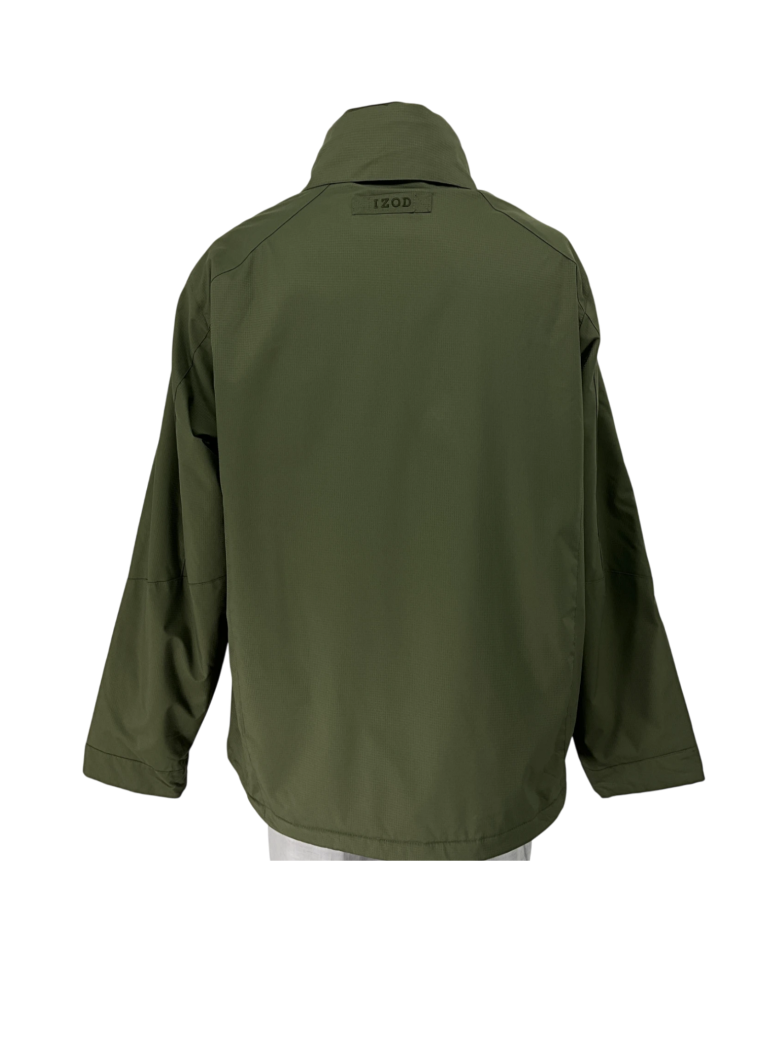 Green olive jacket in size large with front closure and front pocket by Izod.