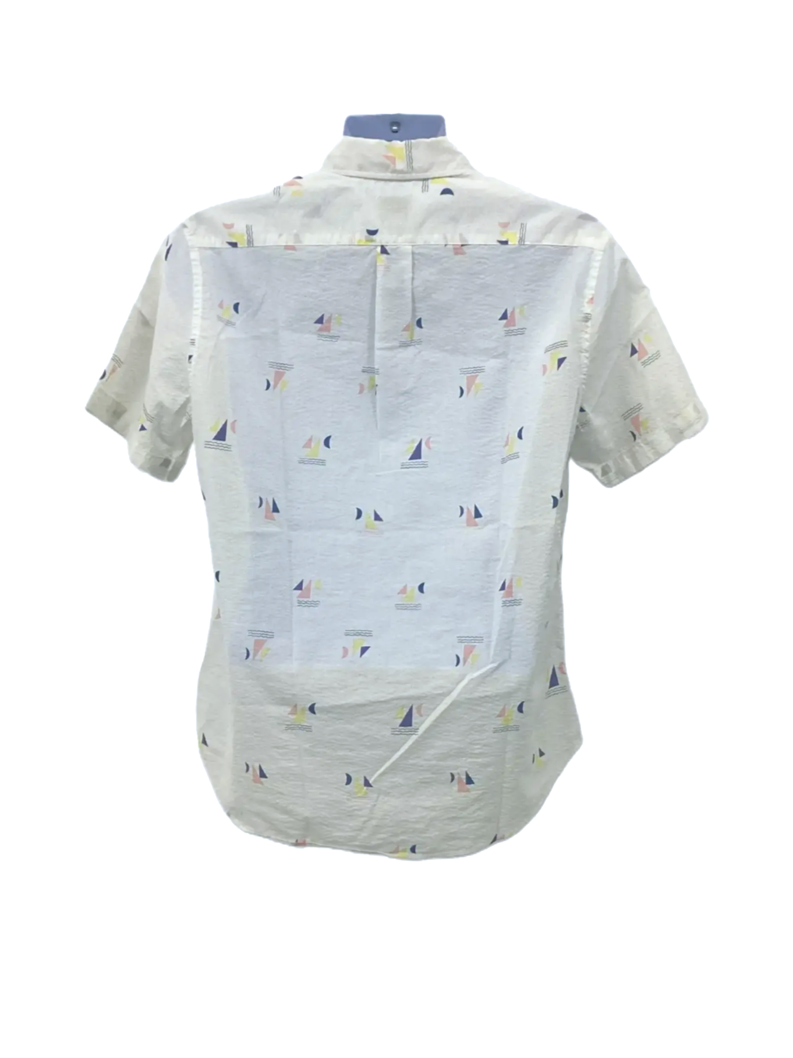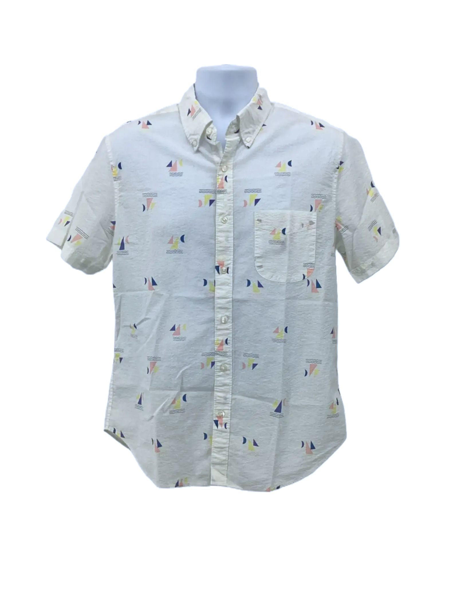 This is a button-down shirt with a sailboat pattern from J.Crew. It is perfect for warm climates and casual outfits. The item is in excellent condition. 100% Cotton