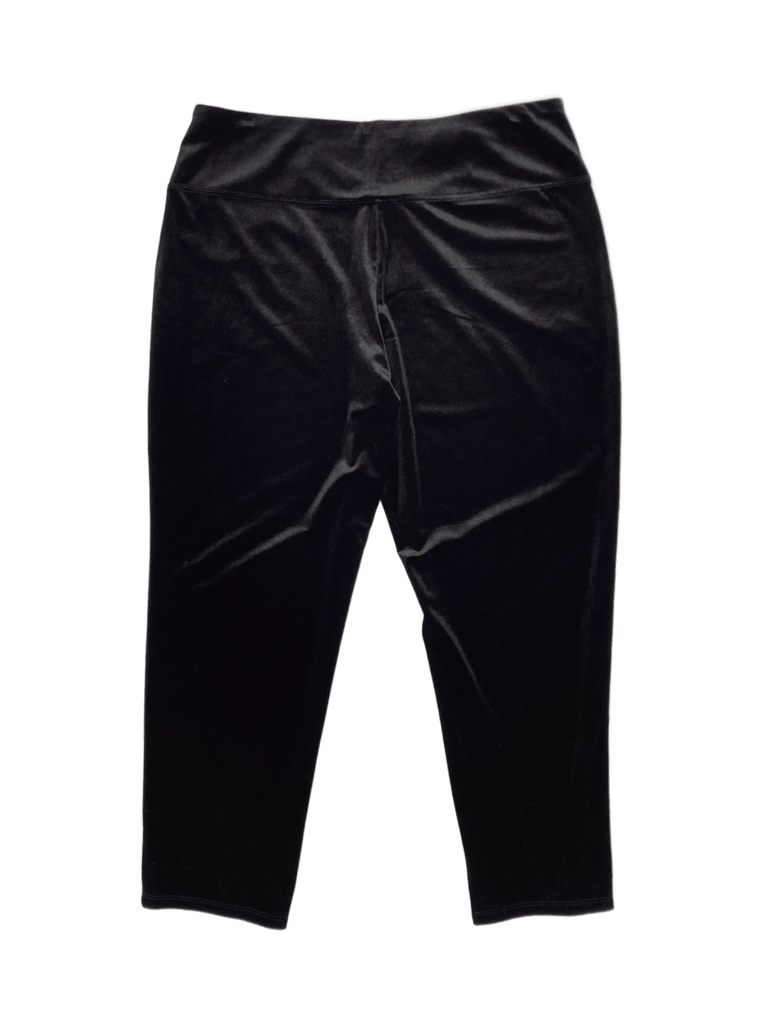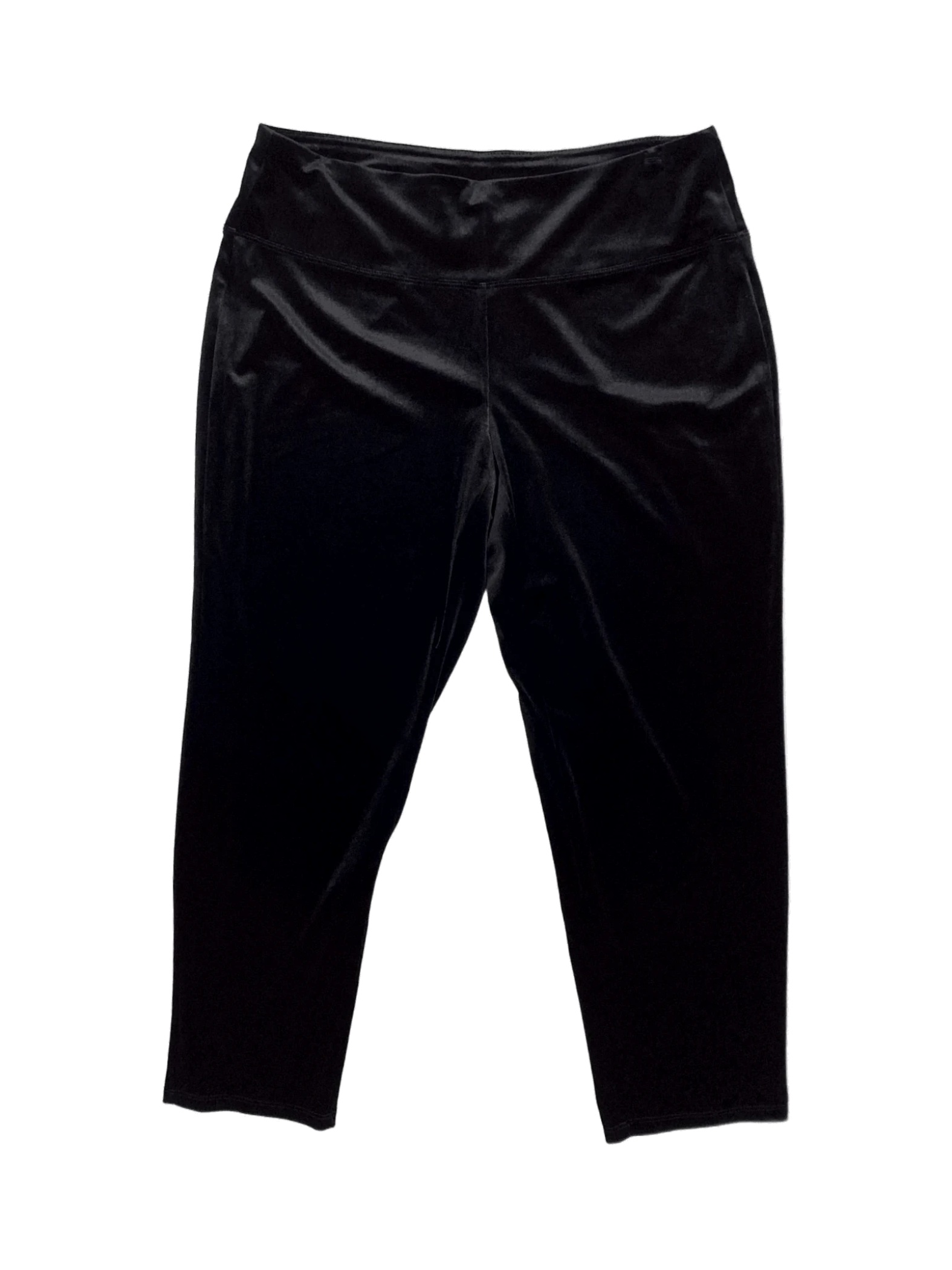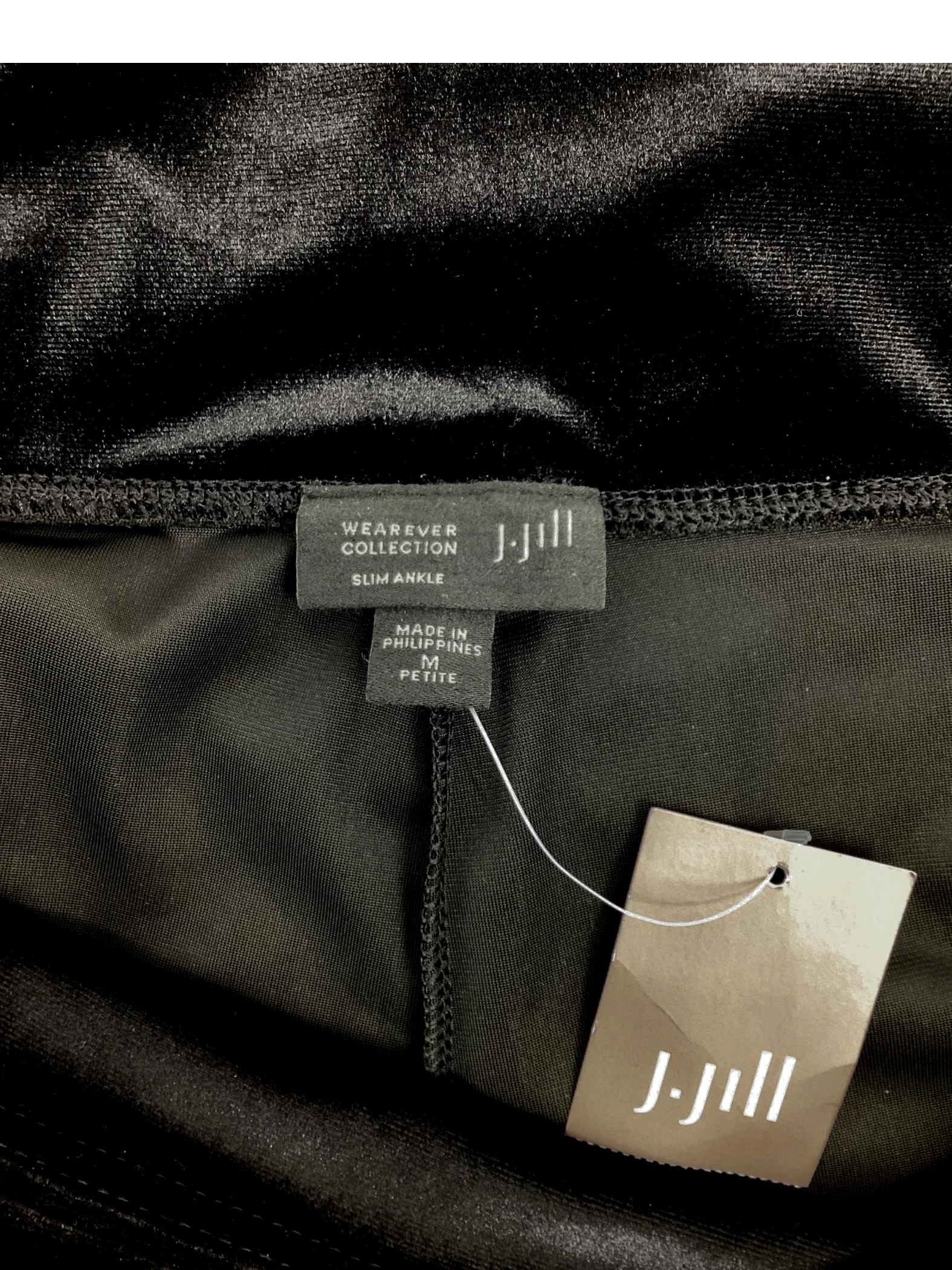These are a pair of J JILL Black Velvet Pants from the Wearever Collection. They have a full leg, smooth fit, and elastic waistband.