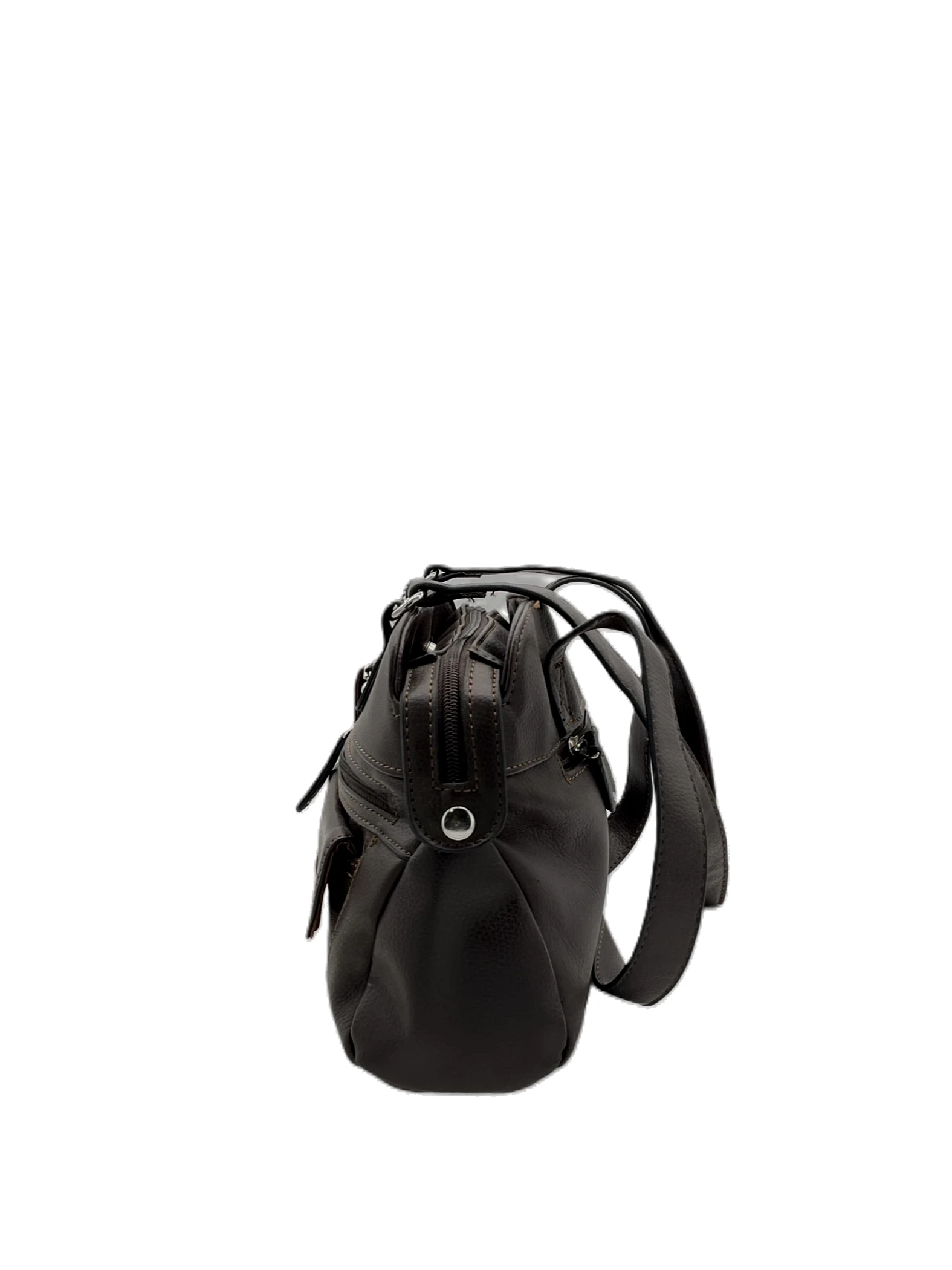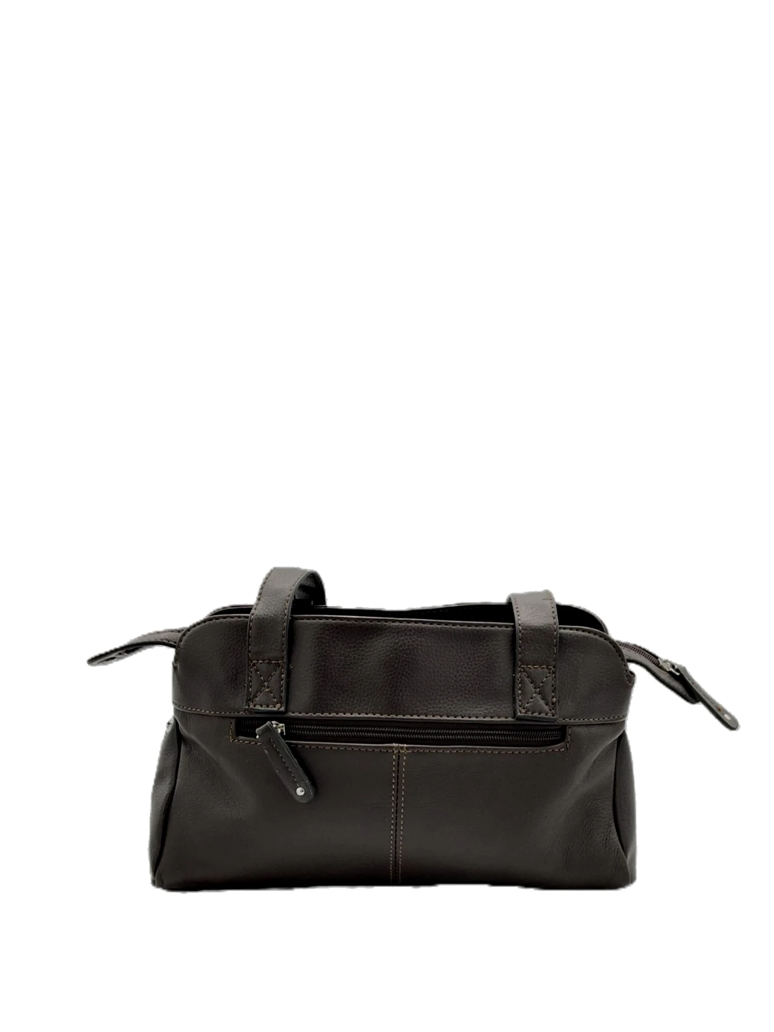 This is a distressed brown leather shoulder bag.
