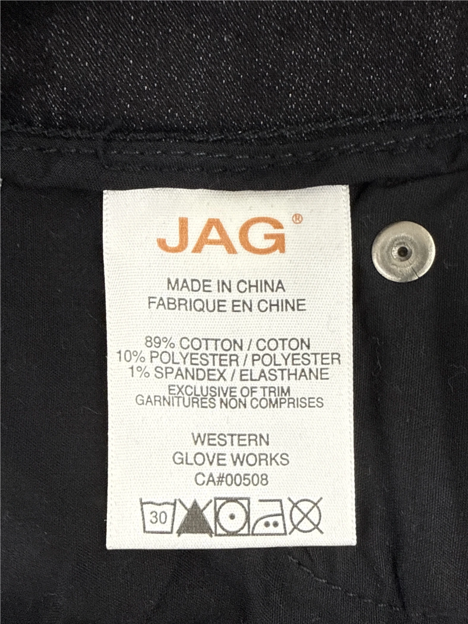 These pre-owned JAG Jeans offer a sleek, modern look. They are a high-rise skinny jean, made from a comfortable cotton blend with a touch of spandex for stretch and shape retention. These black jeans are versatile enough for any outfit. These jeans are in good condition, showing minimal signs of wear. A great addition to any wardrobe. Perfect for creating a chic, everyday style.