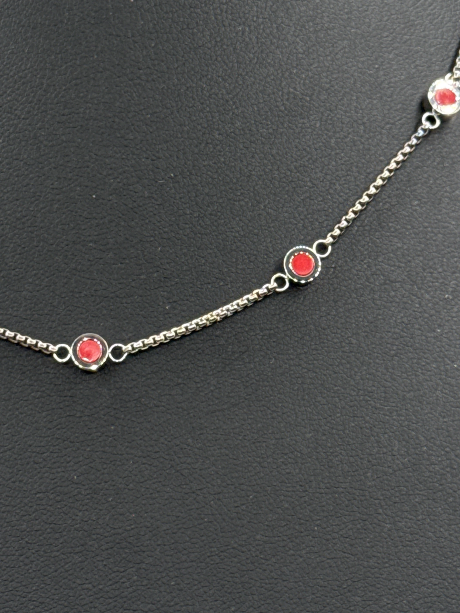This beautiful pre-owned JASON HYDE necklace is a stunning piece of jewelry, perfect for any occasion. The necklace features a delicate chain with red accents, adding a pop of color and elegance. Crafted with quality materials, this necklace is a timeless accessory that complements any outfit. The simple yet eye-catching design makes it a versatile piece, suitable for both casual and formal wear. A stylish addition to your collection.
