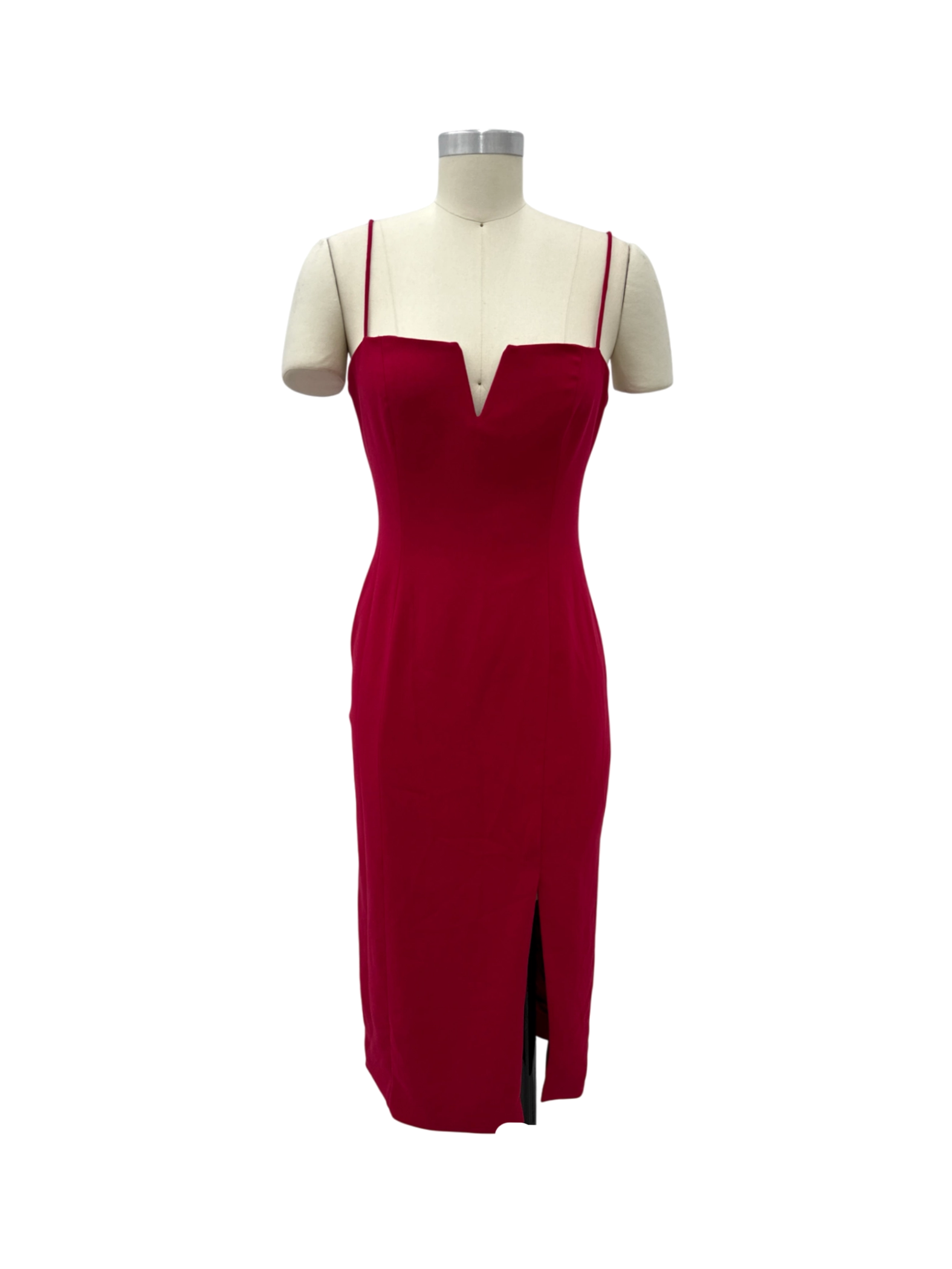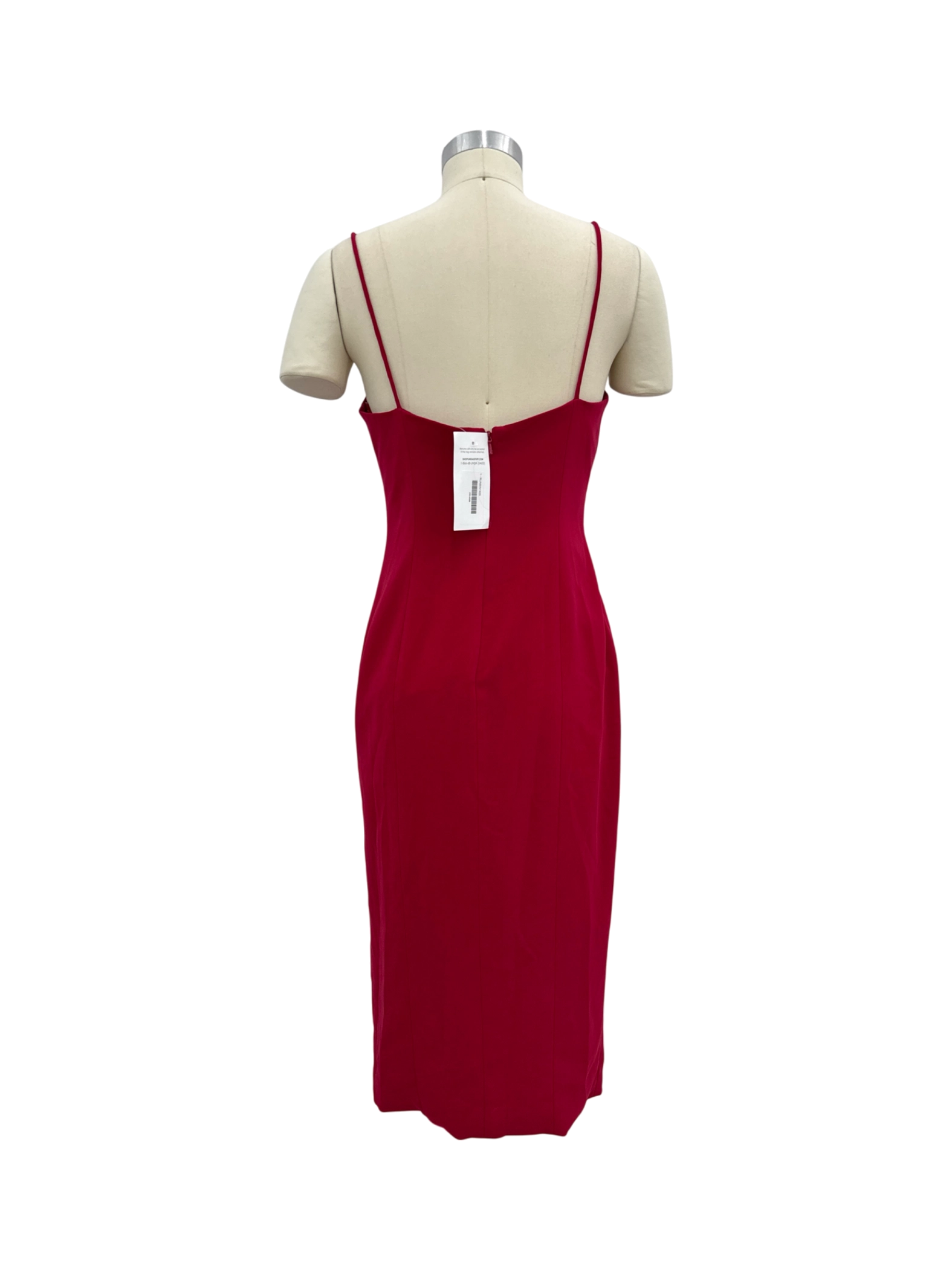 Elevate your evening look with this stunning pre-owned Jay Godfrey dress. Featuring a figure-flattering bodycon silhouette, a striking V-neckline, and delicate spaghetti straps, it exudes sophistication. The midi length and high-quality fabric create a polished appearance, perfect for cocktail parties or special occasions. This dress is a great opportunity to own a designer piece at an accessible price. Embrace timeless style and make a statement with this vibrant, pre-loved dress.