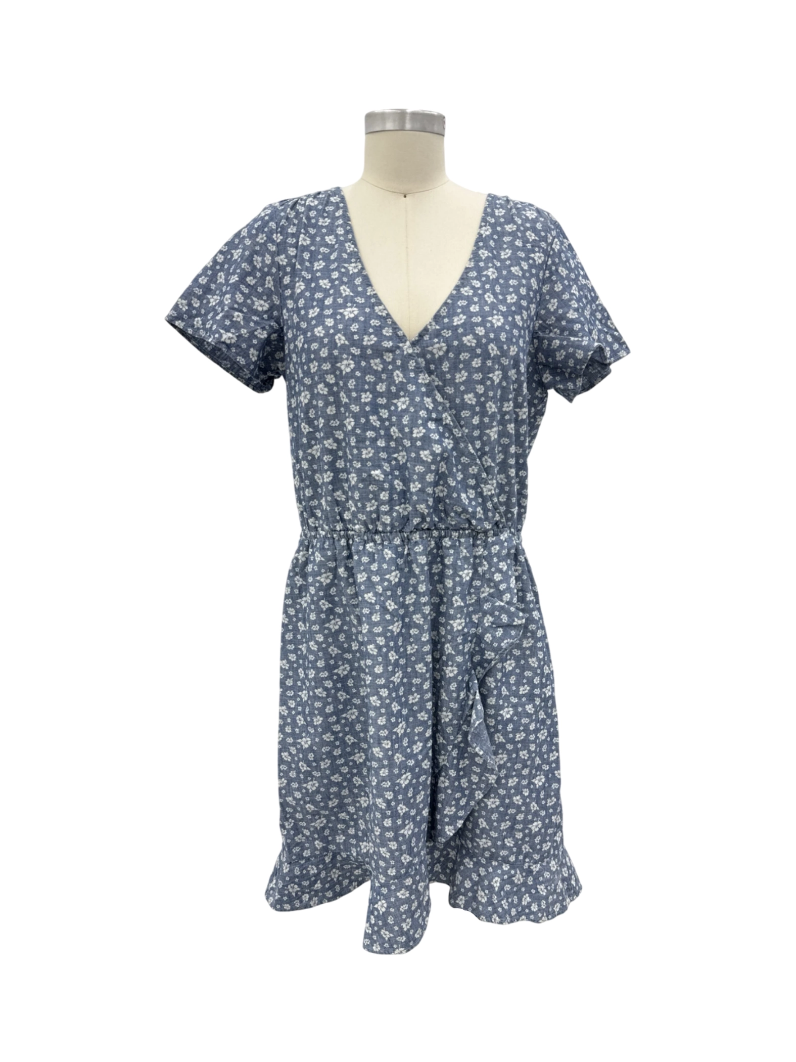 This beautiful pre-owned J.Crew Mercantile dress is perfect for a summer day. Made of 100% cotton, it features a flattering A-line silhouette with a mini skirt length, short sleeves, and a V-neckline. The dress is adorned with a delicate floral pattern and is in size S. This dress is perfect for a casual outing and offers both comfort and style. It is a stylish and comfortable piece that can be dressed up or down.