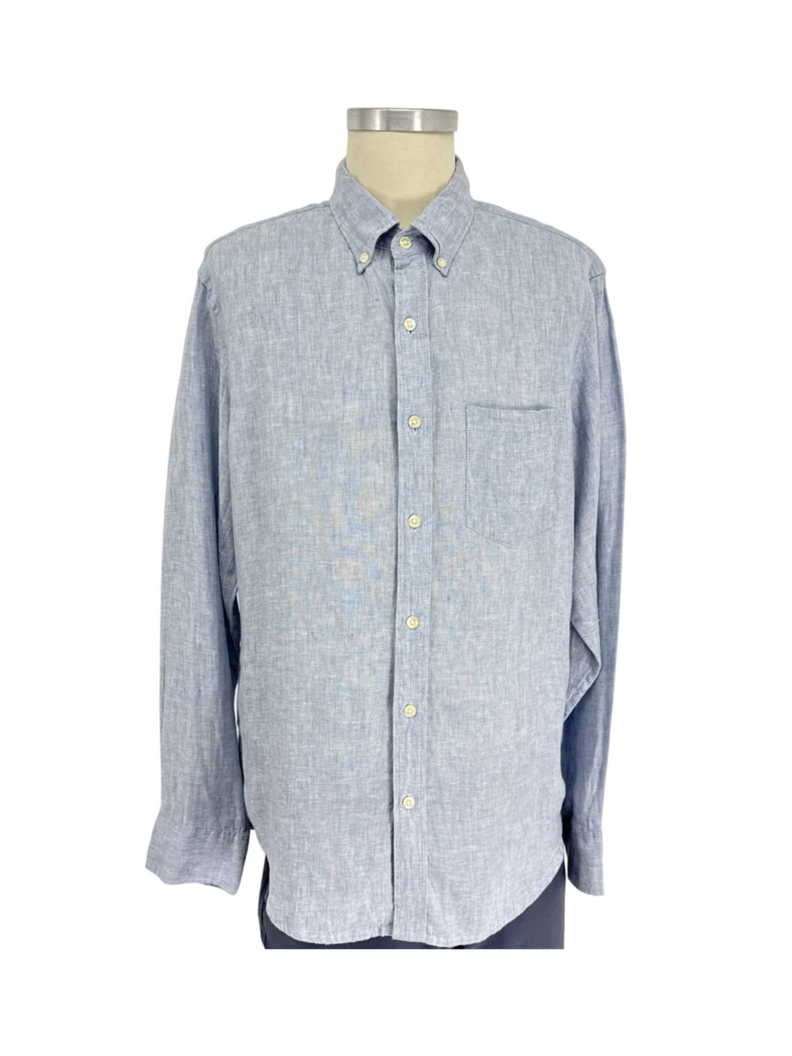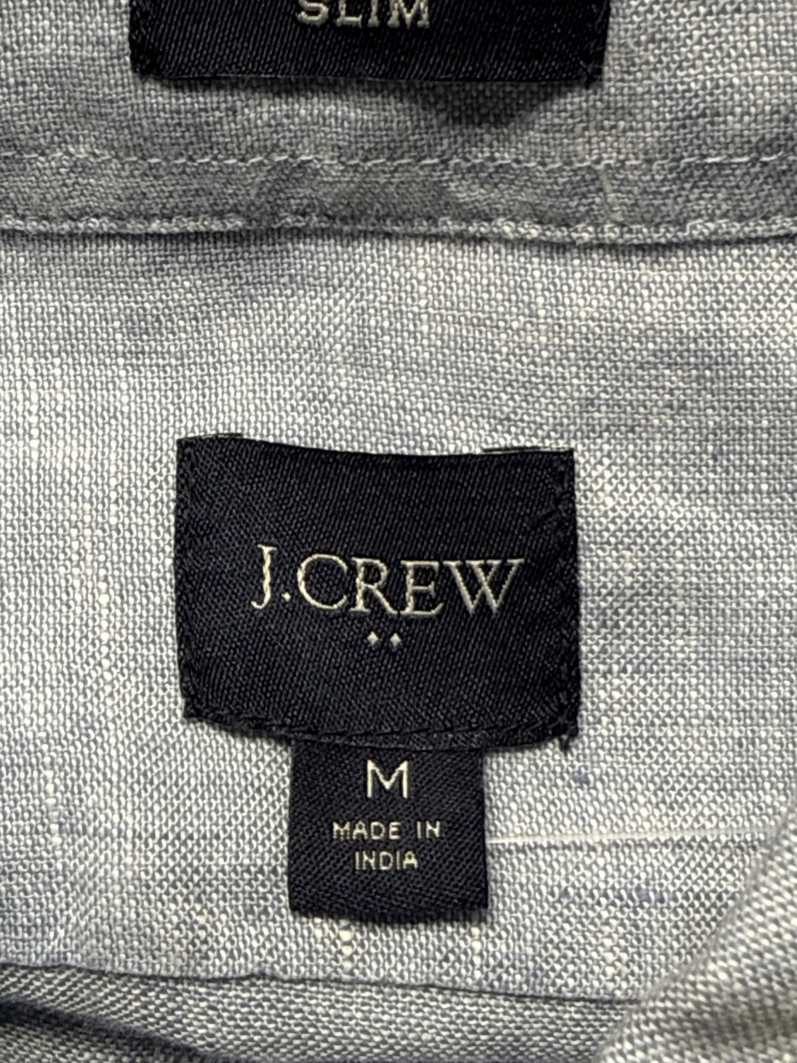 Elevate your wardrobe with this stylish pre-owned J.Crew long-sleeve shirt. Crafted from a comfortable linen and cotton blend in a light blue hue, this shirt offers a classic yet modern look. Featuring a button-down closure and a traditional collar, it's perfect for both casual and semi-formal occasions. The shirt is designed for a slim fit and provides a great fit for spring, summer, and fall. A versatile and timeless addition to any man's closet. Made in India.