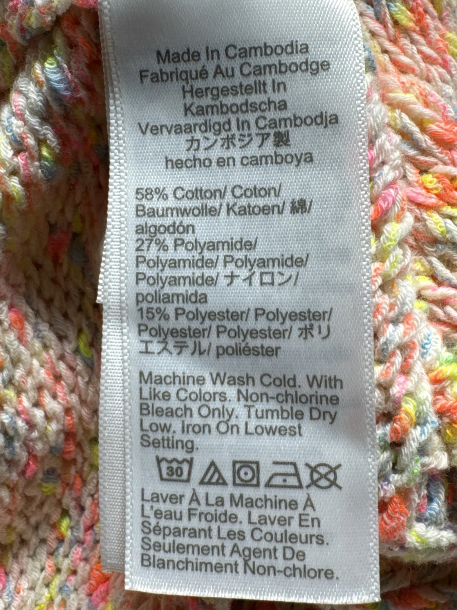This J.Crew cardigan sweater is a stylish and versatile addition to any wardrobe. Featuring a beautiful multicolor pattern and a comfortable V-neck, this sweater is perfect for layering during fall or spring. Crafted from a soft blend of cotton, polyester, and polyamide, it offers both style and comfort. The button-up closure and classic design make it a timeless piece. This pre-owned sweater is in excellent condition, offering great value and style.