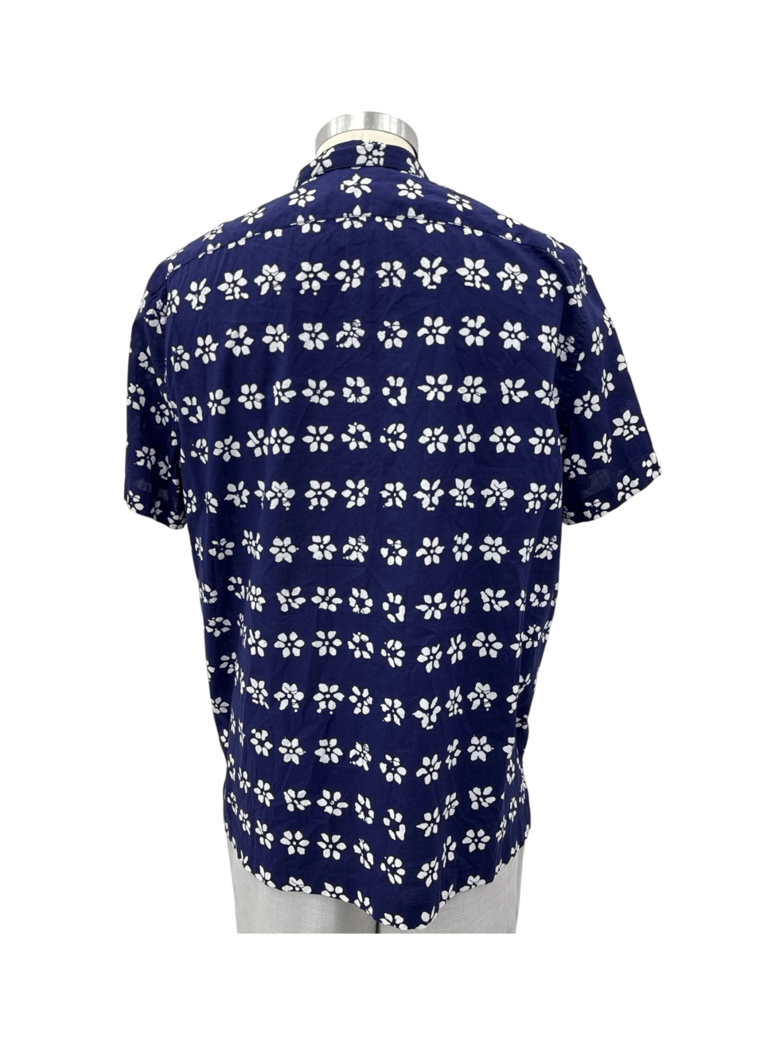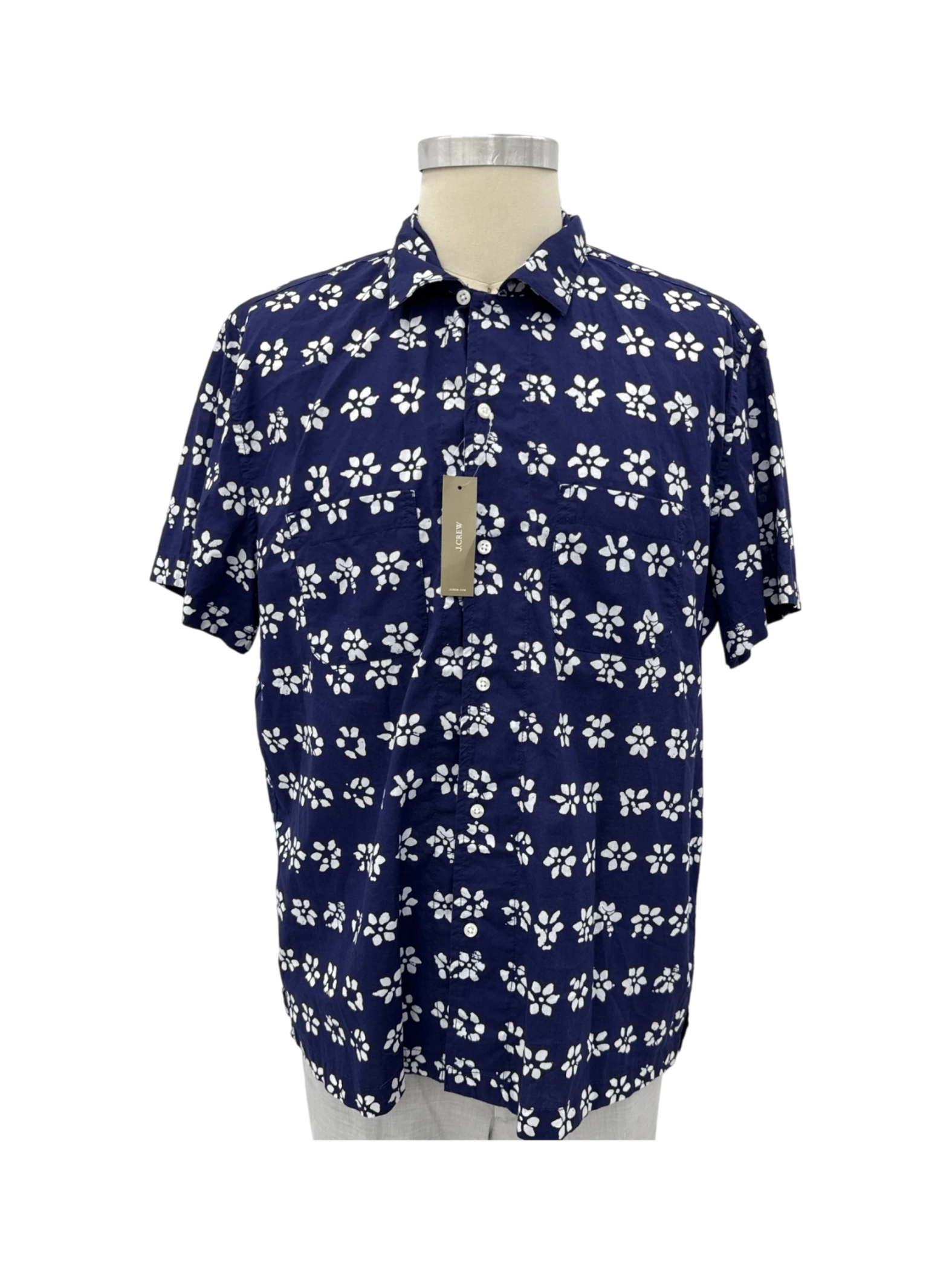 This pre-owned J.Crew men's short-sleeve shirt is a stylish addition to any wardrobe. Featuring a classic collar, button-up closure, and a vibrant floral pattern on a navy blue background, it's perfect for warm weather. The shirt is made from a comfortable cotton blend and is ideal for casual outings or a relaxed work environment. Crafted with quality and designed for both comfort and style, this shirt is a great find.