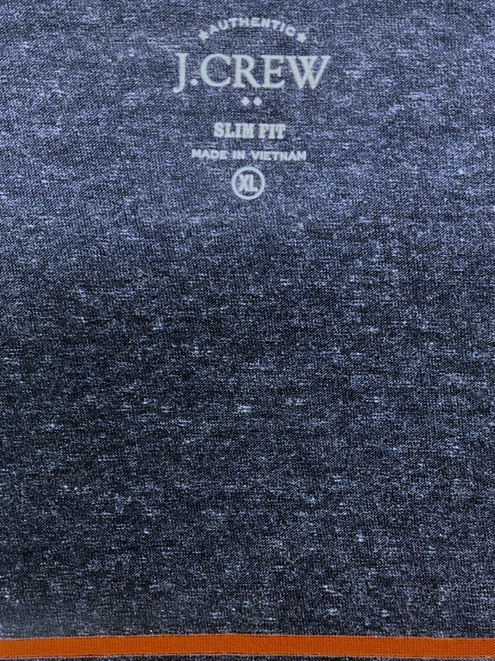 J Crew's men's casual shirt is a blue striped slim fit crew neck with a pocket, in size XL.