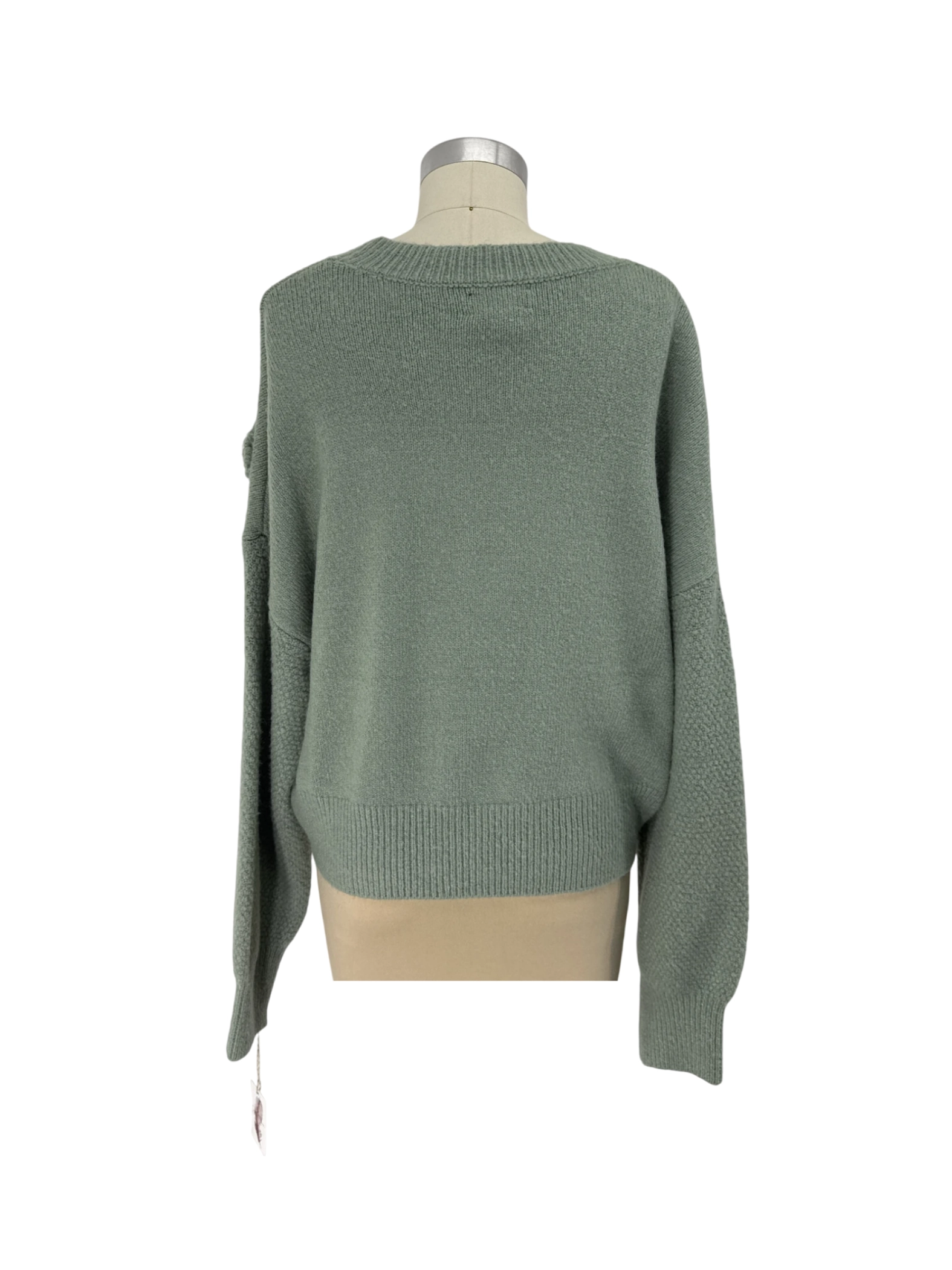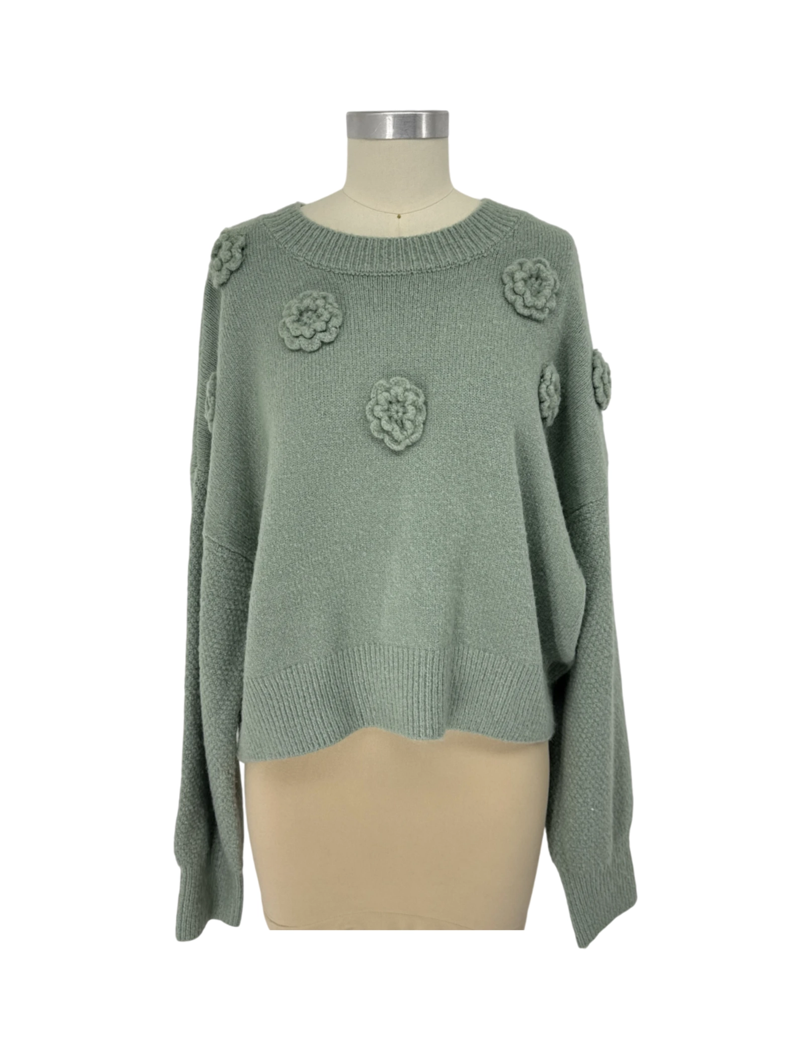 Elevate your fall wardrobe with this pre-owned Jessica Simpson sweater. Crafted with a soft blend of acrylic, nylon, and spandex, this sweater features a classic round neck and long sleeves. The unique floral appliqué adds a touch of charm, perfect for a casual yet stylish look. Ideal for the cooler months, this sweater provides both comfort and elegance. The mint green hue complements a variety of outfits, making it a versatile piece for any closet.