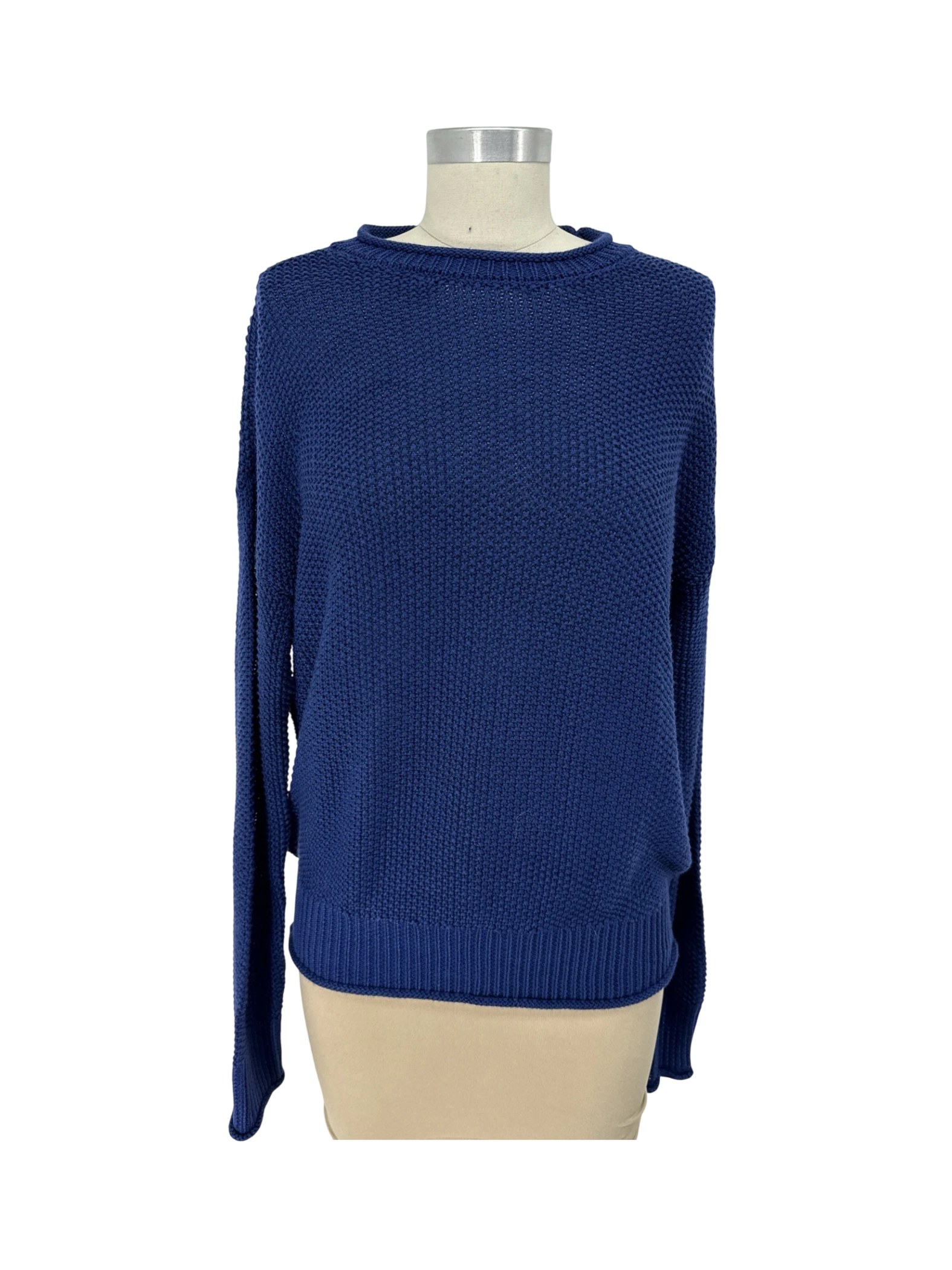This pre-owned Jessica Simpson sweater is a stylish addition to any wardrobe. Crafted with a blend of polyester and nylon, this sweater offers both comfort and durability. The classic blue color makes it easy to pair with various outfits. This pullover sweater is perfect for cooler weather. With its timeless design, this sweater is a versatile piece suitable for casual outings or layering.