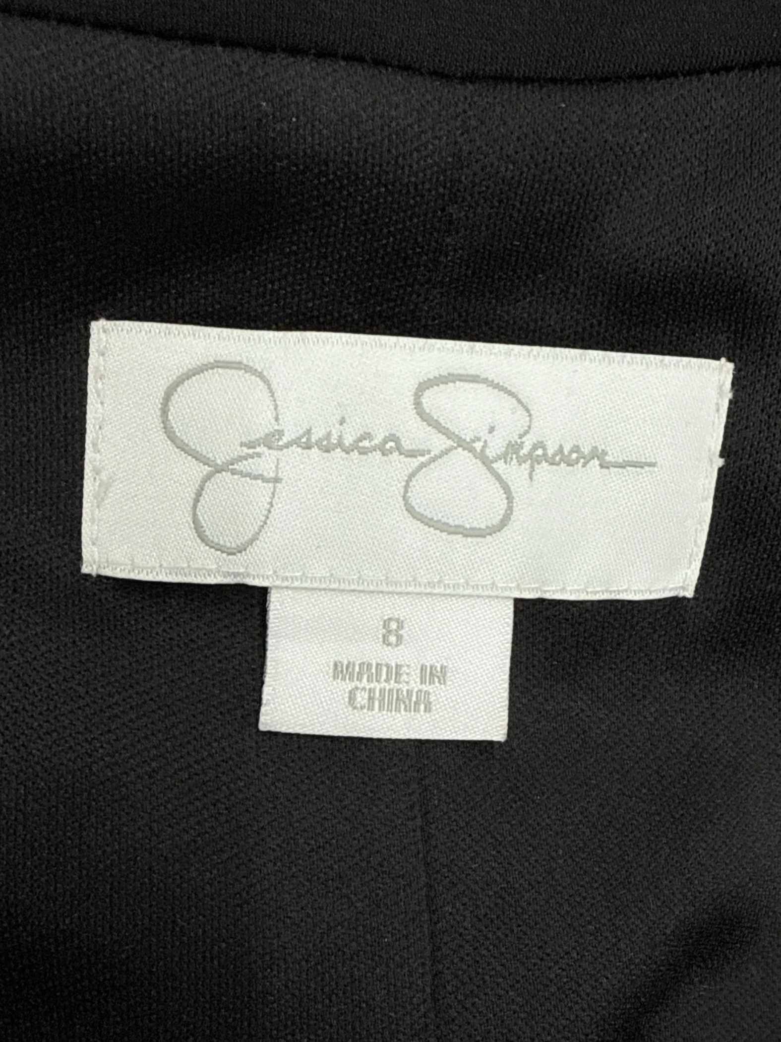 This elegant Jessica Simpson dress is perfect for any occasion. The black A-line dress features a flattering V-neck, short sleeves, and a mini skirt length. Made from a blend of polyester and spandex, it offers both comfort and style. Ideal for cocktail parties or casual outings, this dress is a versatile addition to your wardrobe.
