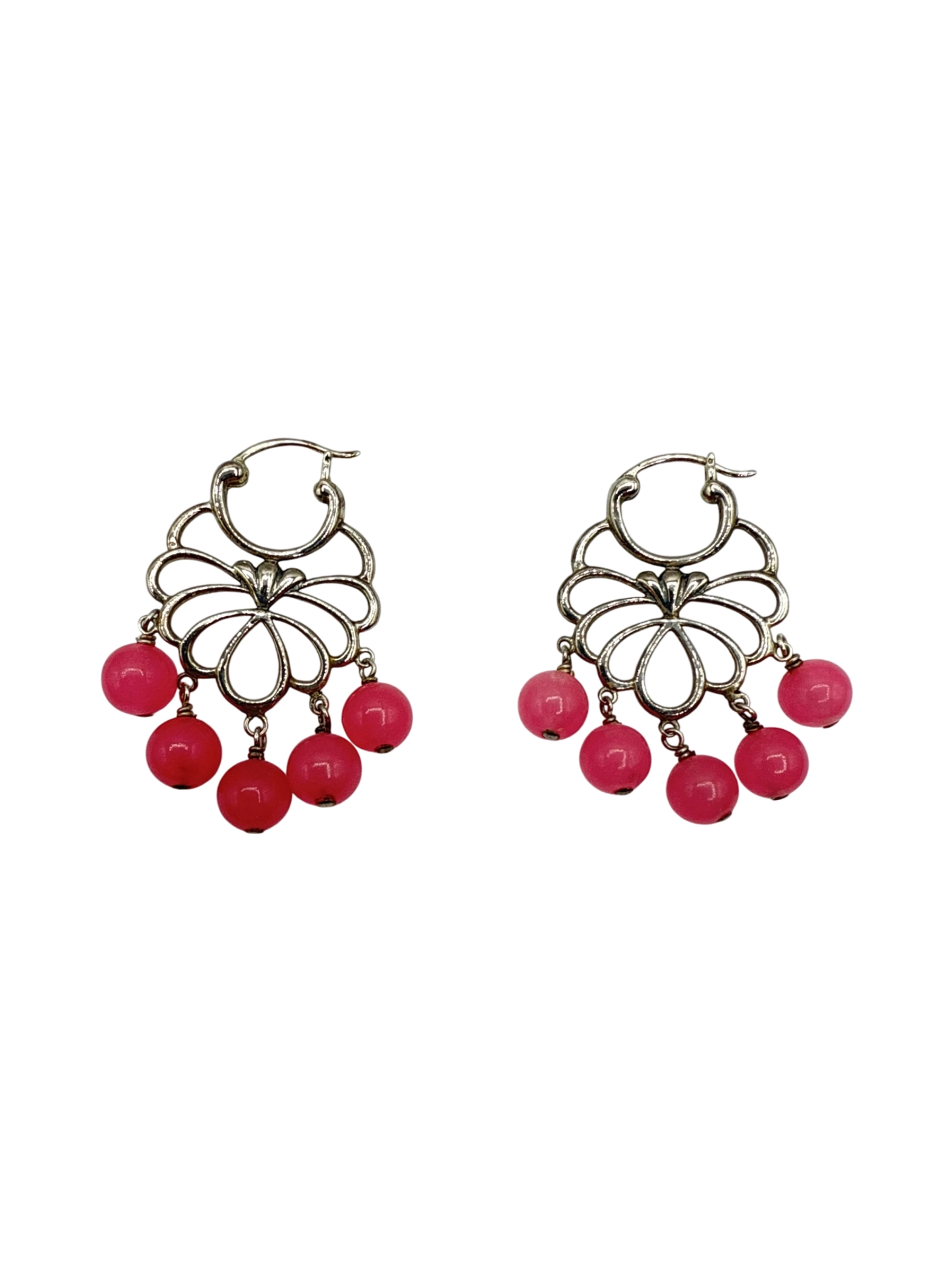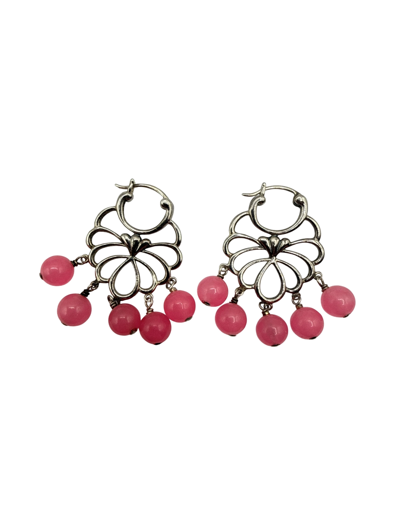 Elegant drop earrings, perfect for adding a touch of charm to any outfit. These earrings feature a delicate metal design with dangling pink beads. These pre-owned earrings offer a unique style that complements your look. Whether you're dressing up for a special occasion or adding a pop of color to your everyday wear, these earrings are a must-have.